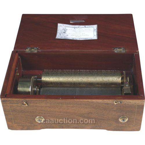 Bornand 6" Keywind Cylinder Music Box. 4 Air, Totally Restored Nancy Fratti 1982, C. 1850, Serial Number 5054.