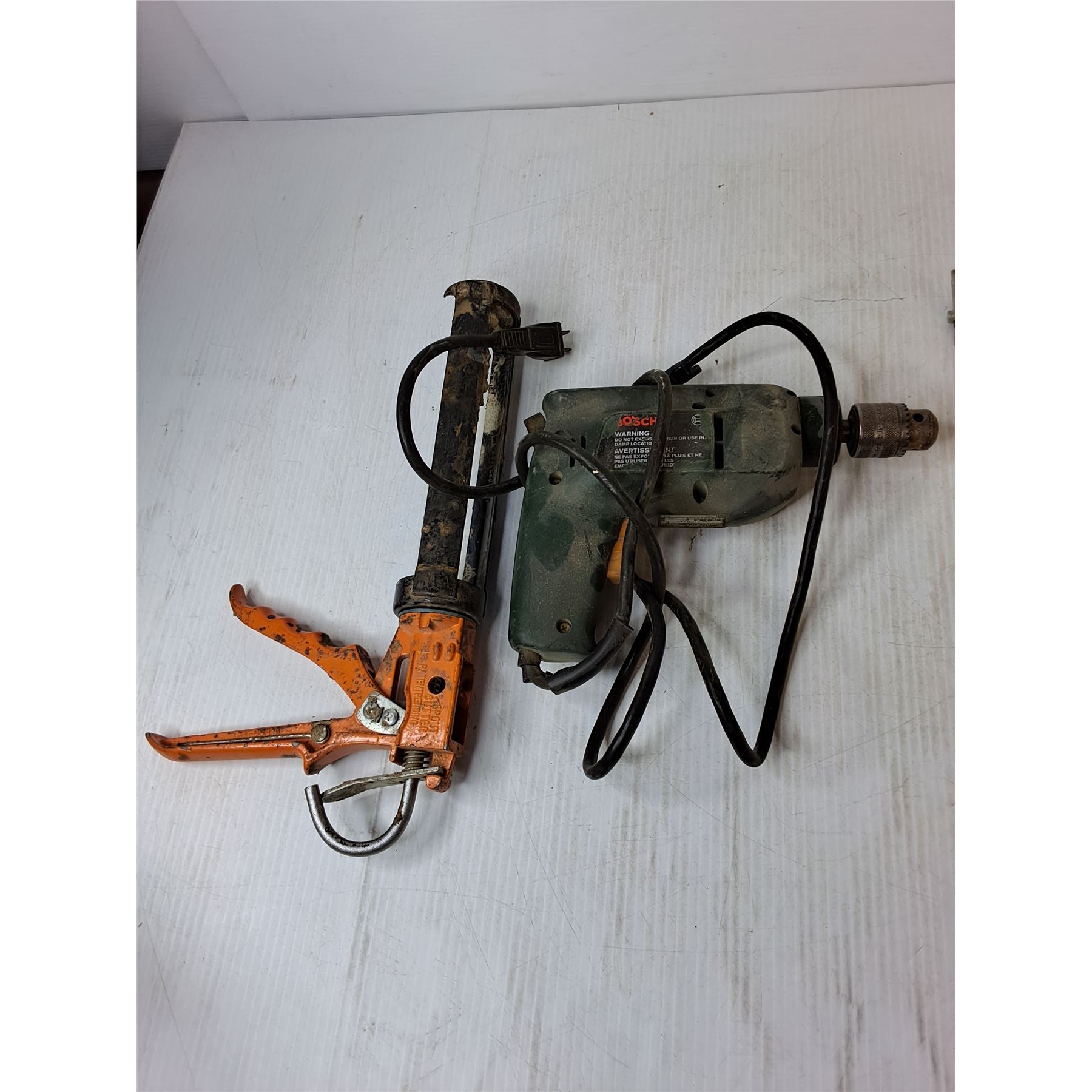 Bosch Corded Drill- Powers On, C Clamp, Caulking Gun, Misc.