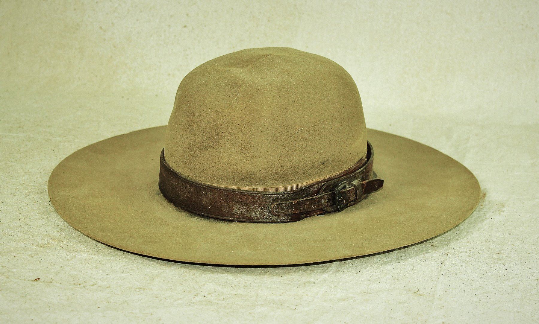 Early Stetson flat brim, sugar loaf style hat with wonderful early hatband.