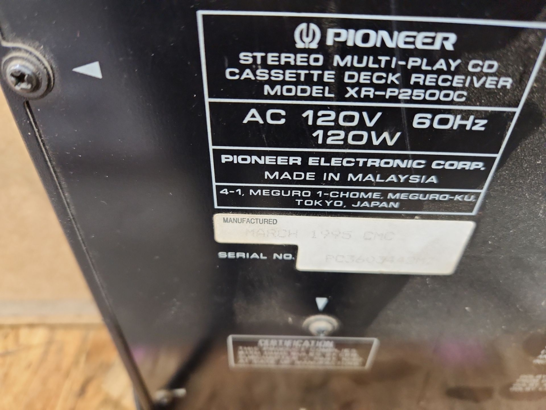 Pioneer Stereo XR-P2500C, Panasonic TC-P50C1 (No Remote), Tool Organizer Drawers 15 W, 6 D, 19 T