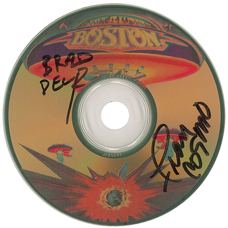 Collector’s edition CD of their debut album signed on the front cover in black felt tip by Brad Delp and Fran Cosmo, and signed again on the CD by both Delp and Cosmo. In fine condition. Accompanied by a full letter of authenticity from Roger Epperson/REAL.