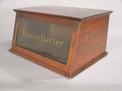 Boston Garter store display - wood/glass, 14" x 7.5" x 10.5" Ex. cond.