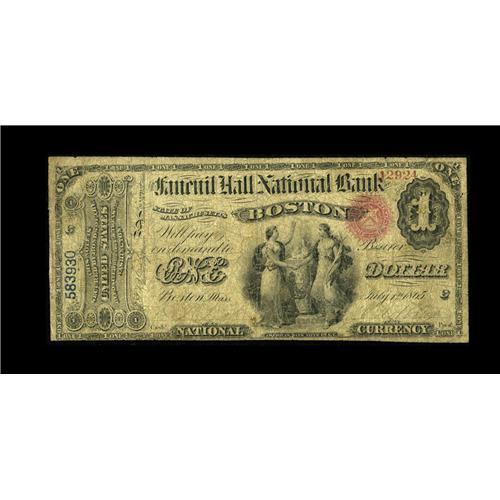 <B>Boston, MA</B></I> - $1 Original Fr. 380 <B>The Faneuil Hall NB</B></I> Ch. # 847<BR>Only First Charter Aces and Deuces are known from this institution, which lasted from 1865 until 1909 and issued up through the Red Seal design type. We anticipate that this <B>Very Good</B></I> example should sell for about...<BR><I>From The Bill and Kathy Stella Currency Collection</B></I><BR><BR><b>Shipping:</b> Coin/Currency (<a target="_blank" href="http://www.heritageauctions.com/common/shipping.php">view shipping information</a>)