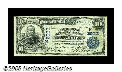 <B>Boston, MA</B></I> - $10 1902 Date Back Fr. 618 <B>The Commercial NB</B></I> Ch. #(N)3923<BR>This nomenclature was the first of two titles used by this institution prior to its closure in 1928. Grading <B>Very Fine,</B></I> it displays well-balanced margins and retains considerable crispness.
