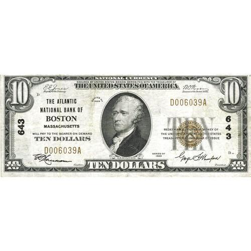 Boston, MA - $10 1929 Ty. 1 The Atlantic NB Ch. # 643So