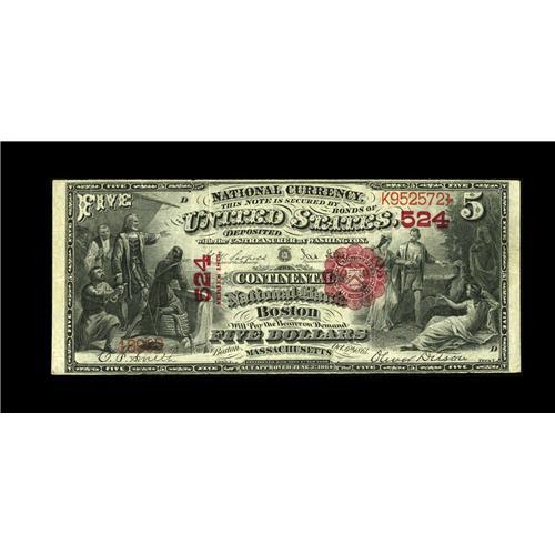 <B>Boston, MA</B></I> - $5 1875 Fr. 404 <B>The Continental NB</B></I> Ch. # 524<BR>This <B>Extremely Fine</B></I> addition to the census is only the third $5 Original Series traced from here. It retains much of its original crispness and will easily sell for...<BR><I>From The Bill and Kathy Stella Currency Collection</B></I><BR><BR><b>Shipping:</b> Coin/Currency (<a target="_blank" href="http://www.heritageauctions.com/common/shipping.php">view shipping information</a>)