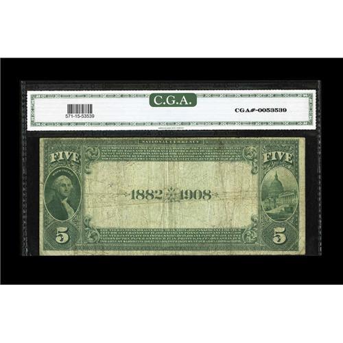 <B>Boston, MA</B></I> - $5 1882 Date Back Fr. 537 <B>The National Shawmut Bank</B></I> Ch. # (N)5155<BR>An attractive and solid <B>CGA Fine 15</B></I> graded note. While not a particularly scarce bank, it is not often that more than one large size note on this bank is offered in a single sale.