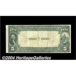 Boston, MA - $5 1882 Date Back Fr. 537 The National Shawmut Bank Ch. # (N)5155A nicely margined Fine with darkly stamped signatures and nice margins all around. While this is hardly a scarce bank, the example we offer tonight is an ideal middle grade example as a representative of the overall design type. <BR><BR><B>Important notice:</B> Heritage usually auctions material at the rate of 200-250 lots per hour. On some occasions eBay Live bid software or the Internet may not be able to keep up with the pace of the auction. We recommend placing a realistic absentee bid now as insurance to avoid disappointment. Occasionally the auctioneer may eliminate or reject an eBay Live bid, and the auctioneer may also reopen a lot after the close of the eBay live bidding (usually because we missed an audience bid), and may reject your bid even if it shows you as the winning bidder. By bidding via eBay Live, you agree that Heritage may award the lot to another bidder at its sole discretion under the circumstances described above or any other reasonable circumstances. Since eBay bids are not shown to us until we open the lot on the floor, we treat those bids just like floor bids. In most cases the floor responds before the eBay bid is presented to us, due to Internet lag time, so for consistency we have made it a policy that floor bids are always considered first over tie eBay live bids. Also please note that all Heritage lots purchased through eBay Live carry a 20% Buyer's Premium. Please make sure you read the Terms and Conditions before you bid. <BR><BR><B>IMPORTANT ANNOUNCEMENT ABOUT RESERVES:</B> Heritage now divulges all reserves on its web site 7 days before every auction. If you want to know whether the reserve on this lot has been met, and if not, what the reserve amount is, please visit this lot page on the HeritageCoin.com web site, or email: bid@HeritageGalleries.com