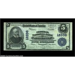 Boston, MA - $5 1902 Plain Back Fr. 609 Federal NB Ch. # 12336An attractive example bearing one of the "Forbidden Titles" prohibited by the McFadden Act of 1926. Very Fine. Important notice: Heritage usually auctions material at the rate of 200-250 lots per hour. On some occasions eBay Live bid software or the Internet may not be able to keep up with the pace of the auction. We recommend placing a realistic absentee bid now as insurance to avoid disappointment. Occasionally the auctioneer may eliminate or reject an eBay Live bid, and the auctioneer may also reopen a lot after the close of the eBay live bidding (usually because we missed an audience bid), and may reject your bid even if it shows you as the winning bidder. By bidding via eBay Live, you agree that Heritage may award the lot to another bidder at its sole discretion under the circumstances described above or any other reasonable circumstances. Also please note that all Heritage lots purchased through eBay Live carry a 20% Buyer's Premium. Please make sure you read the Terms and Conditions before you bid.