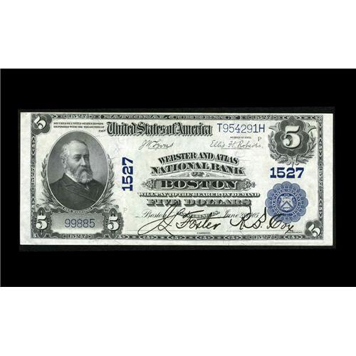 Boston, MA - $5 1902 Plain Back Webster & Atlas NB
