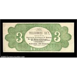 Boston, MA- Germania Orchestra of Boston $3 Ad NoteFirst ad note with this form we've seen. The reverse text names the soloists and notes the 25ó admission charge for adults. About Uncirculated. Important notice: We expect to be auctioning lots at the rate of 200-250 per hour. Sometimes eBay Premier live bid software cannot keep up with that pace, so we strongly recommend that you place a realistic proxy bid now as insurance to avoid disappointment. Also please note that all Heritage/CAA lots purchased through eBay Premier carry a 20% Buyer's Premium. Please make sure you read the Terms and Conditions.