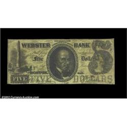 Boston, MA- Webster Bank $5 Aug. 16, 1853 C8An attractive example of this always popular design. Fin