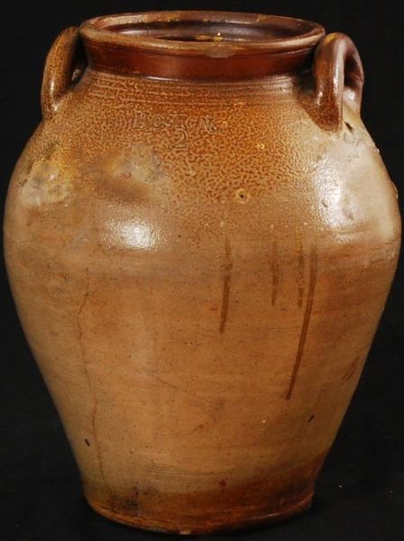 double handled ovoid jar marker Boston, 10.5''x 13 attributed to Frederick Carpenter