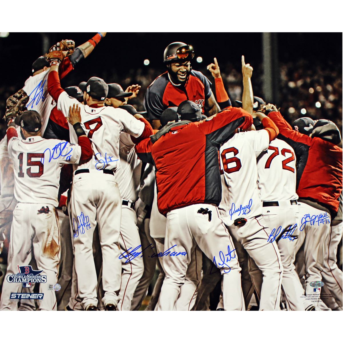 Boston Red Sox Multi Signed 2013 WS Celebration Horizontal 16x20 Photo (MLB Auth) (9 Sigs)