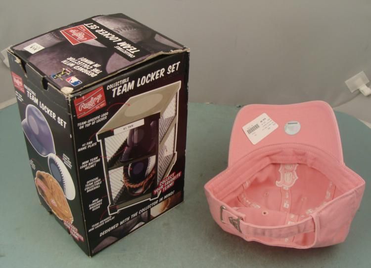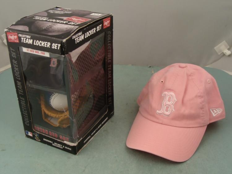 After one of the worse collapses in professional sports history, the Boston Red Sox are looking to regroup after their self-destruction. Here we are offering a Rawlings Collectible Team Locker Set. It comes with a mini helmet, baseball, and baseball glove, all from the Boston Red Sox and comes in a locker. This team locker set comes in its original box and it is in good condition with crack to the plastic covering and wear to the box. The locker set comes with an all pink, adjustable Boston Red Sox hat. Attention all Red Sox fans, this is your chance to root on your team and hoping for a better season next year, by bidding on this great collectible item today!! *