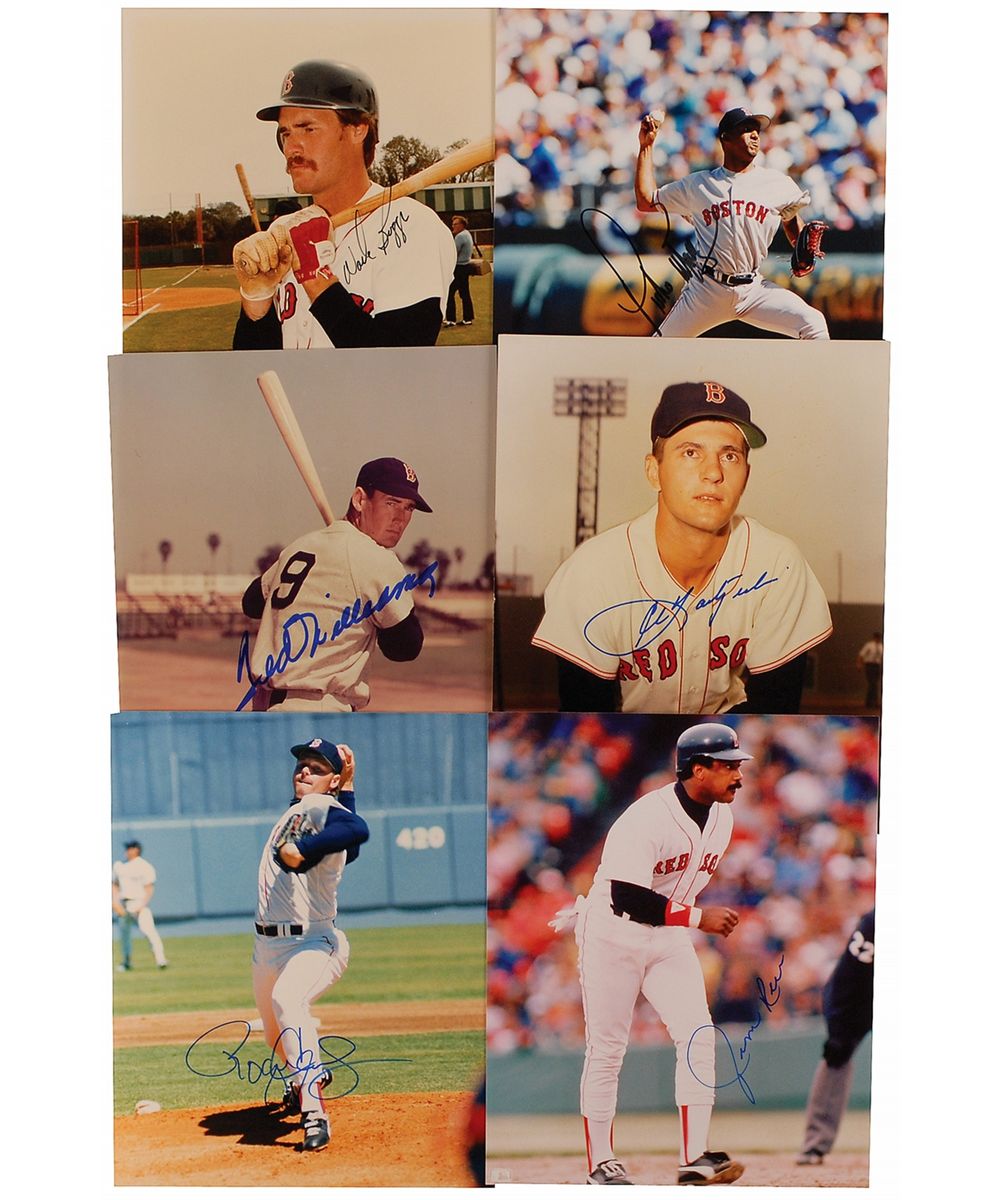 Six color 8 x 10 photos of former Red Sox players, each signed by the respective player pictured. Signers are: Ted Williams, Carl Yastrzemski, Pedro Martinez, Roger Clemens, Jim Rice, and Wade Boggs. In overall fine condition.