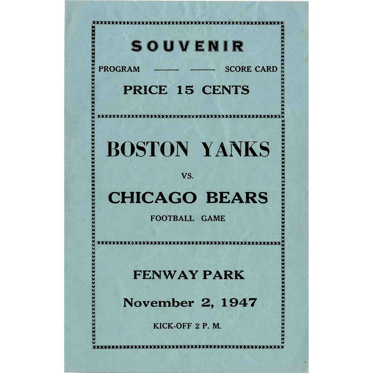 Boston Yanks vs. Chicago Bears Program -- Early Incarnation of Baltimore Colts -- 2 November 1947, Fenway Park -- Near Mint
