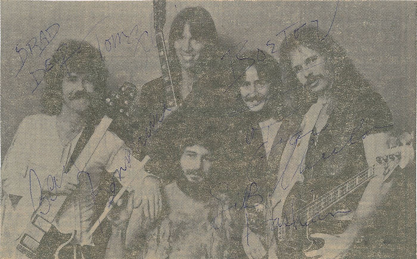 Vintage 6 x 3.75 newspaper photo of Boston, signed in ballpoint by Brad Delp, Tom Scholz, Barry Goudreau, Fran Sheehan, and Sib Hashian. In fine condition.
