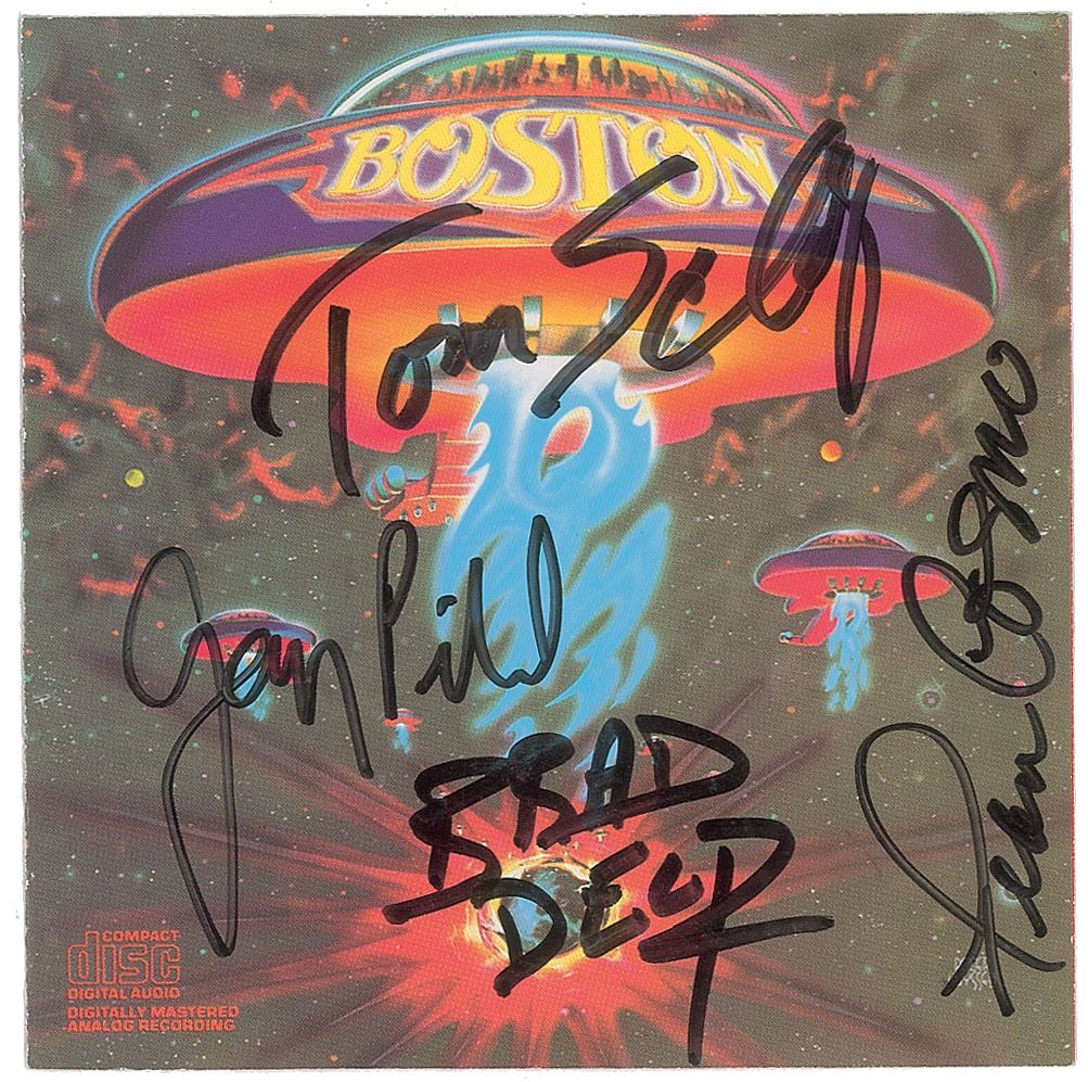 CD booklet for Boston's self-titled debut, signed on the front in black felt tip by Brad Delp, Tom Scholz, Fran Cosmo, and Gary Pihl. In fine condition. The record is not included. Accompanied by a full letter of authenticity from REAL.