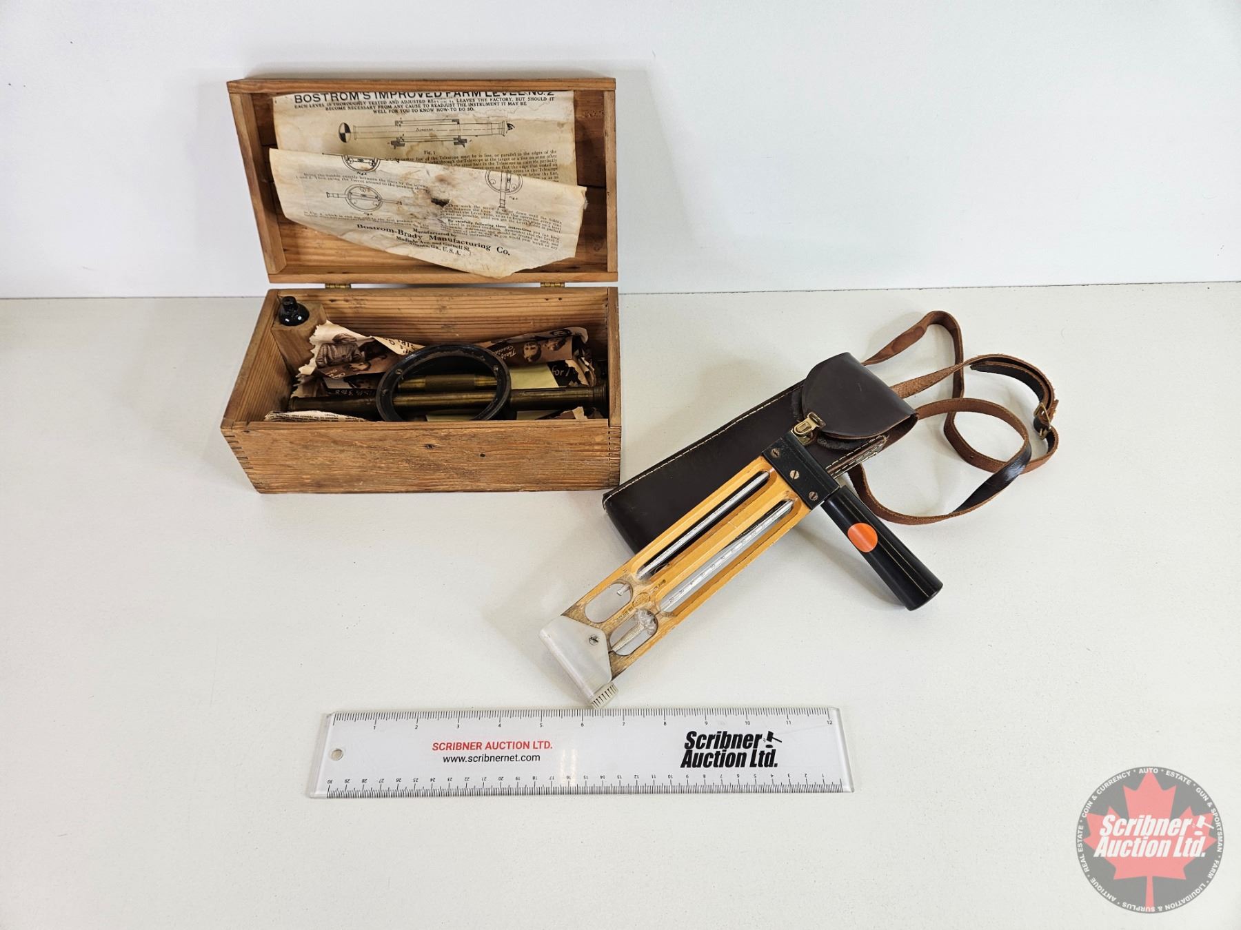 Bostrom's Improved Farm Level No. 2 in Wood Box & Sling Psychrometer in Holster