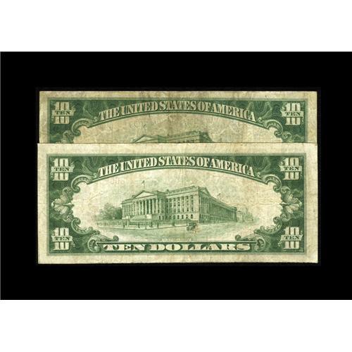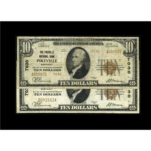 <B>Both Types of Pikeville $10 1929 Issues</B></I><BR>Pikeville, KY - $10 1929 Ty. 1 Pikeville NB Ch. # 7030 <B>VF</B></I><BR>Pikeville, KY - $10 1929 Ty. 2 Pikeville NB Ch. # 7030 <B>Fine</B></I>.<BR>