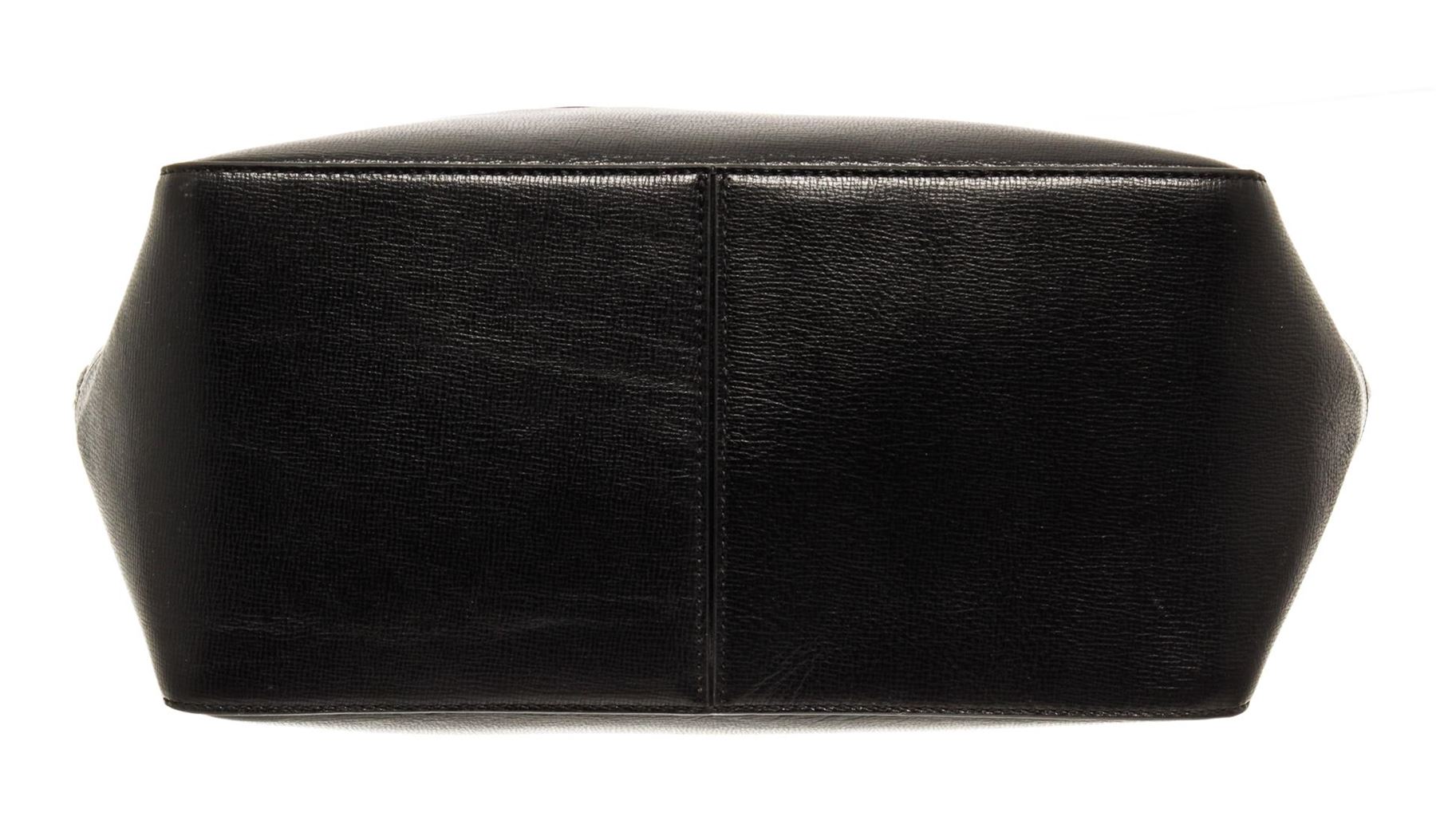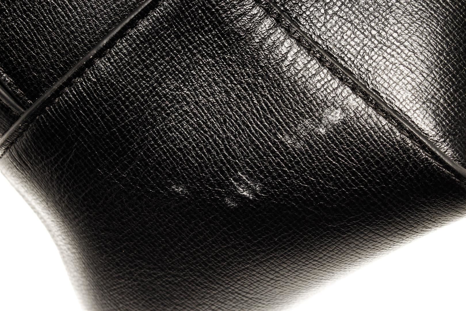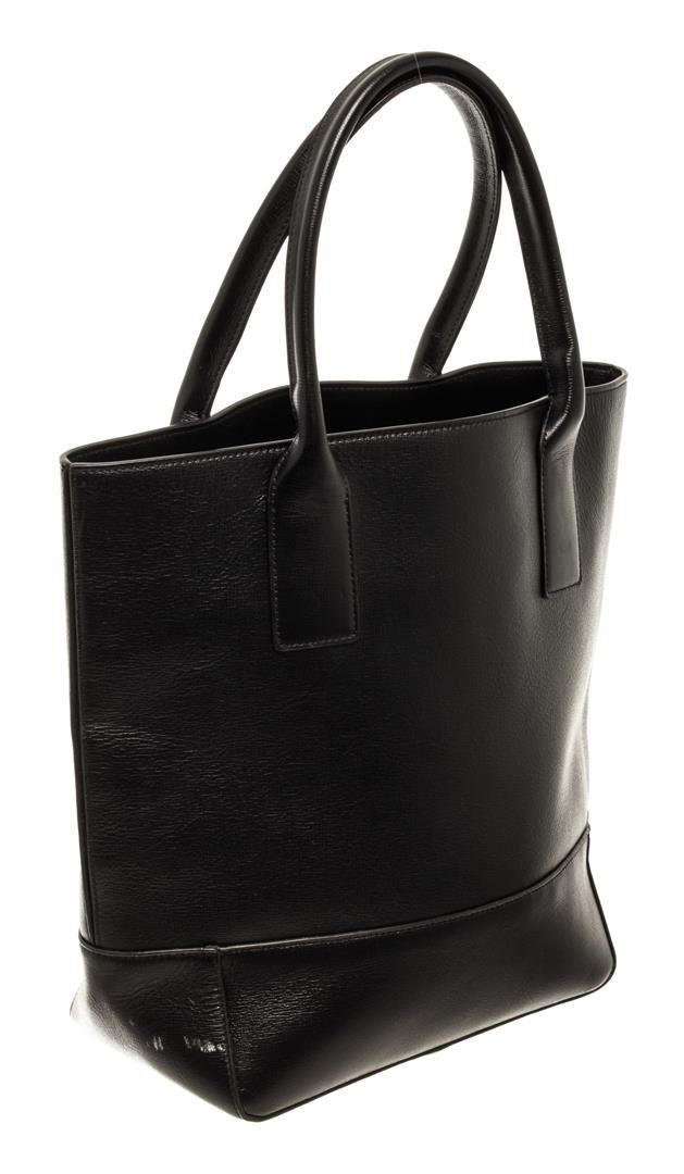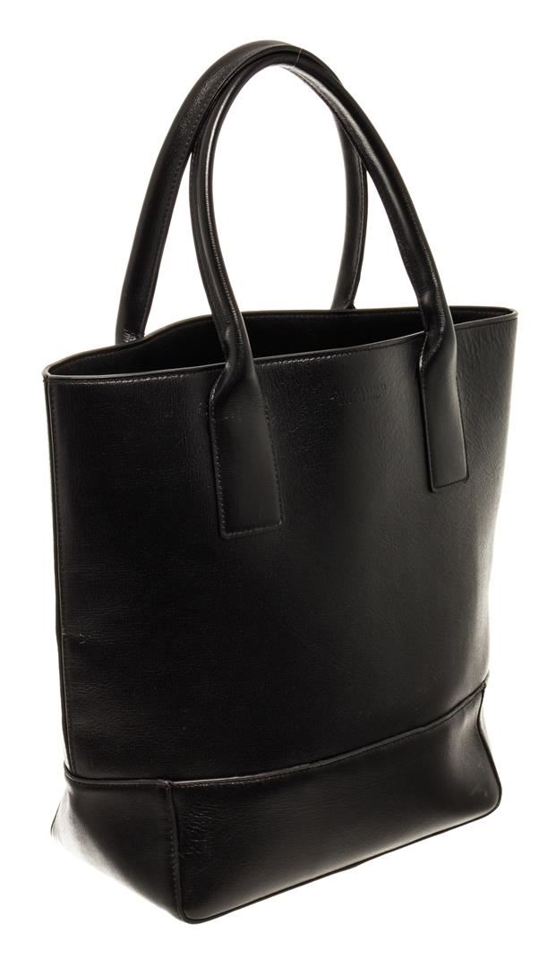 Bottega Veneta Black Leather Open Tote Bag. All available information is listed in the description and shown in the photos. Bottega Veneta Black Leather Open Tote Bag with silver-tone hardware, stitch leather trim, black canvas lining, dual interior slip pockets, dual rolled leather top handles, and zip closure at the top. .