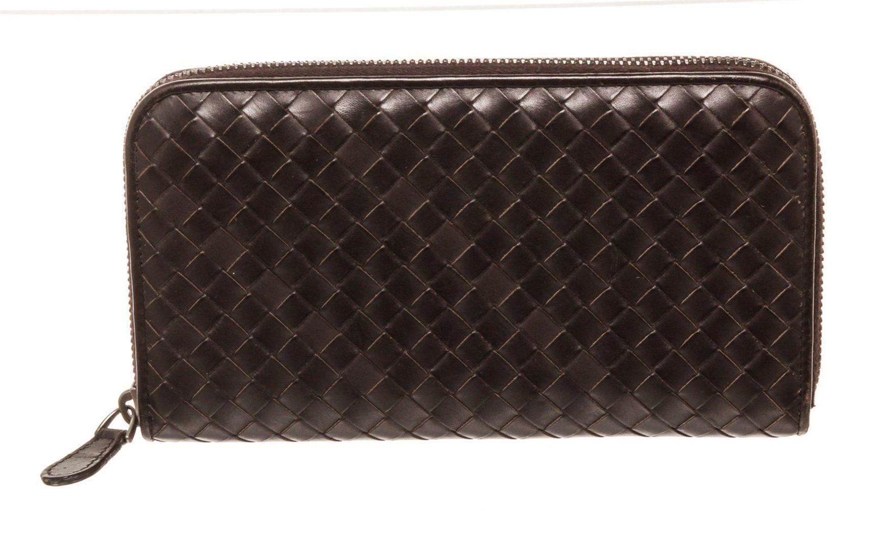Bottega Veneta Black Leather Zippy Wallet with material leather, gold-tone hardware, trim leather, interior zip pocket, leather lining and zipper closure.