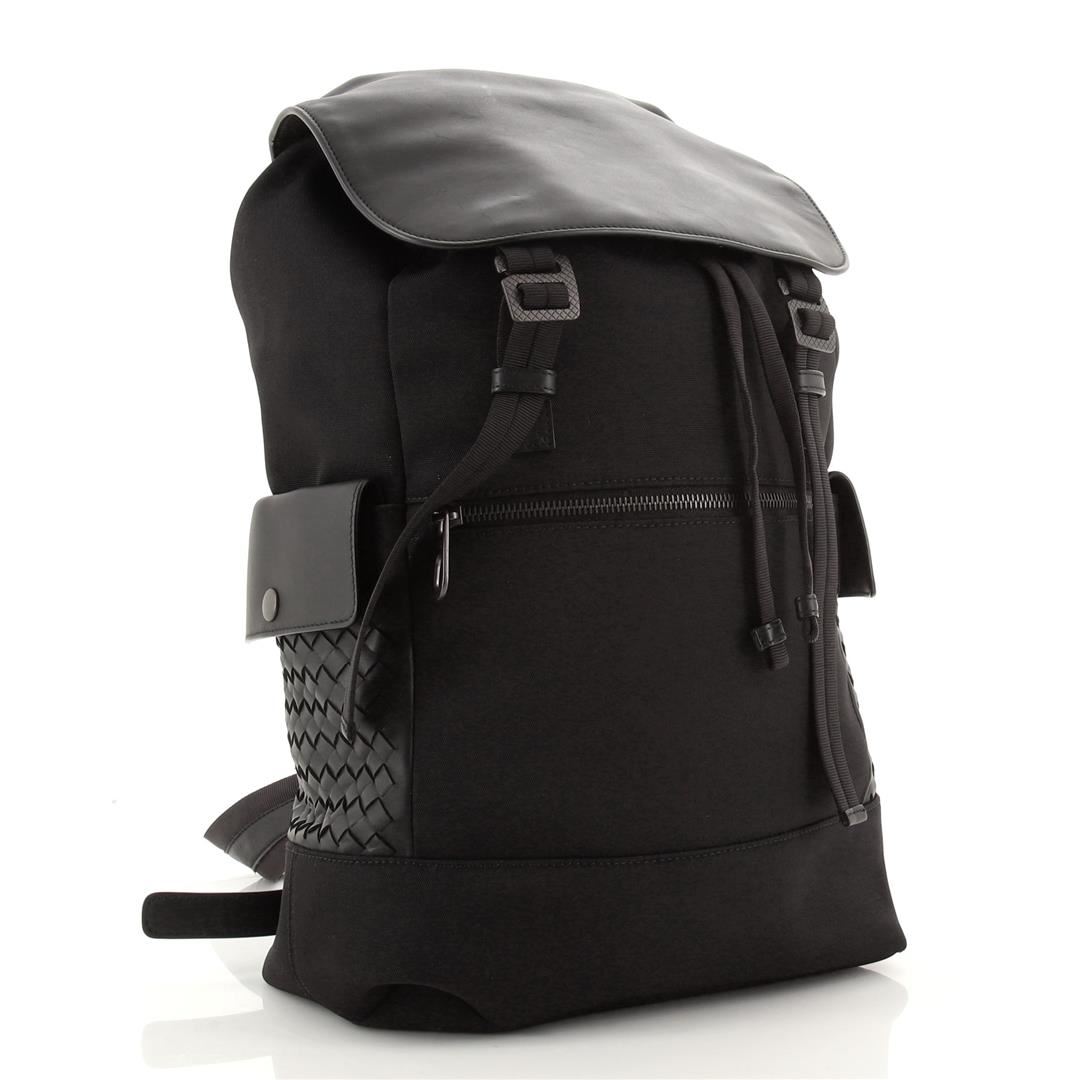Bottega Veneta Sassolungo Backpack Canvas and Leather. All available information is listed in the description and shown in the photos. Bottega Veneta Sassolungo Backpack Canvas and Leather. Minor wear and marks on exterior, scuffs and indentations on flaps, underneath flap and leather trims, scratches on hardware. 78848