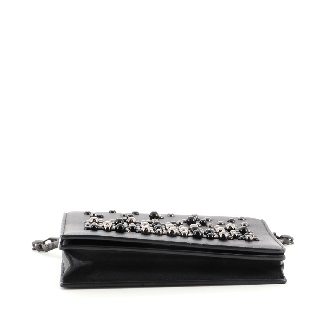 Bottega Veneta Wallet on Chain Pearl Embellished Leather Black