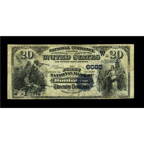 <B>Bottineau, ND</B></I> - $20 1882 Date Back Fr. 555 <B>The First NB</B></I> Ch. # (W)6085<BR>This is a just plain rare note from a bank we have never previously handled. The census shows just five examples, all of which have been very tightly held for many years, with the Gengerke data indicating the last offering of any kind from here at public sale coming back in a 1979 fixed price offering. <B>Fine.</B></I><BR><BR><b>Shipping:</b> Coin/Currency (<a target="_blank" href="http://www.heritageauctions.com/common/shipping.php">view shipping information</a>)