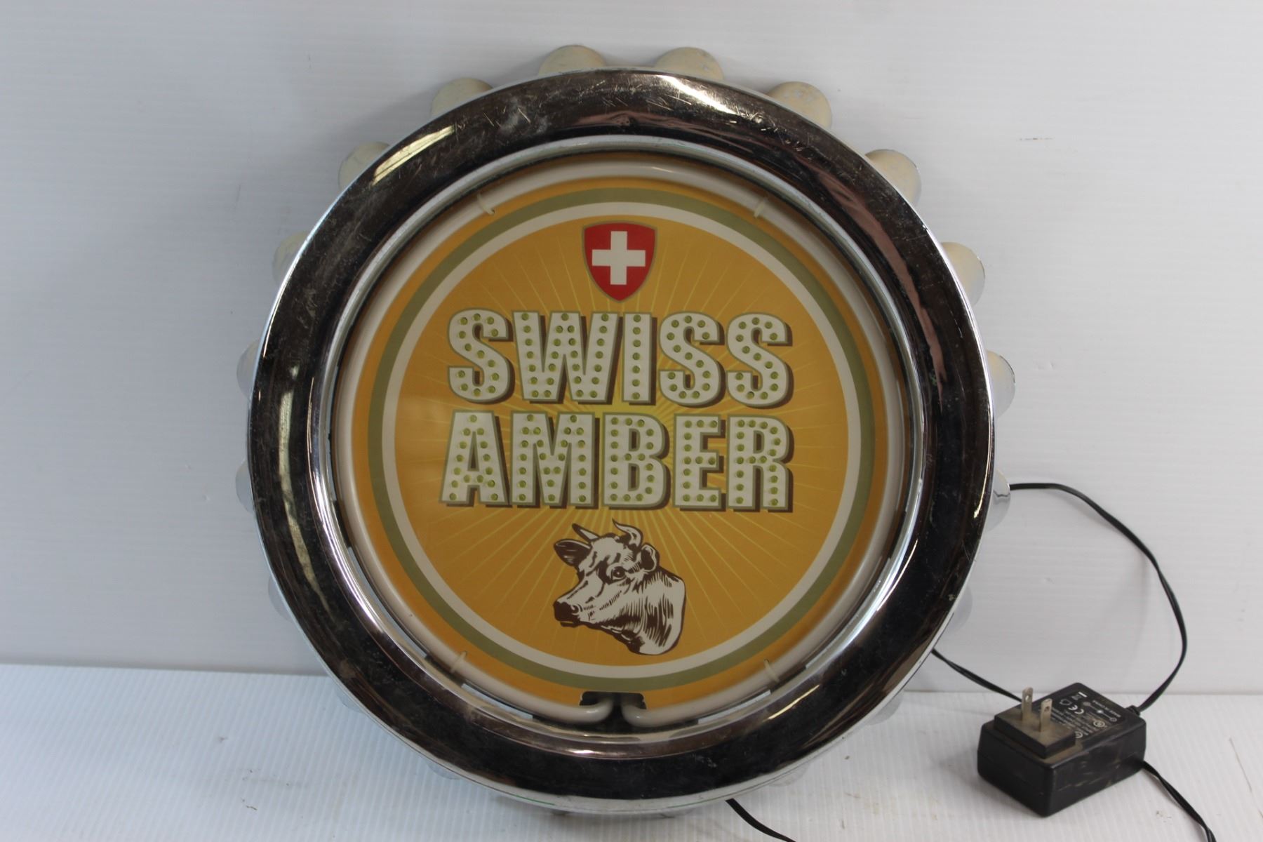 Bottle Cap Swiss Amber Light Up Sign 15'' - As Is
