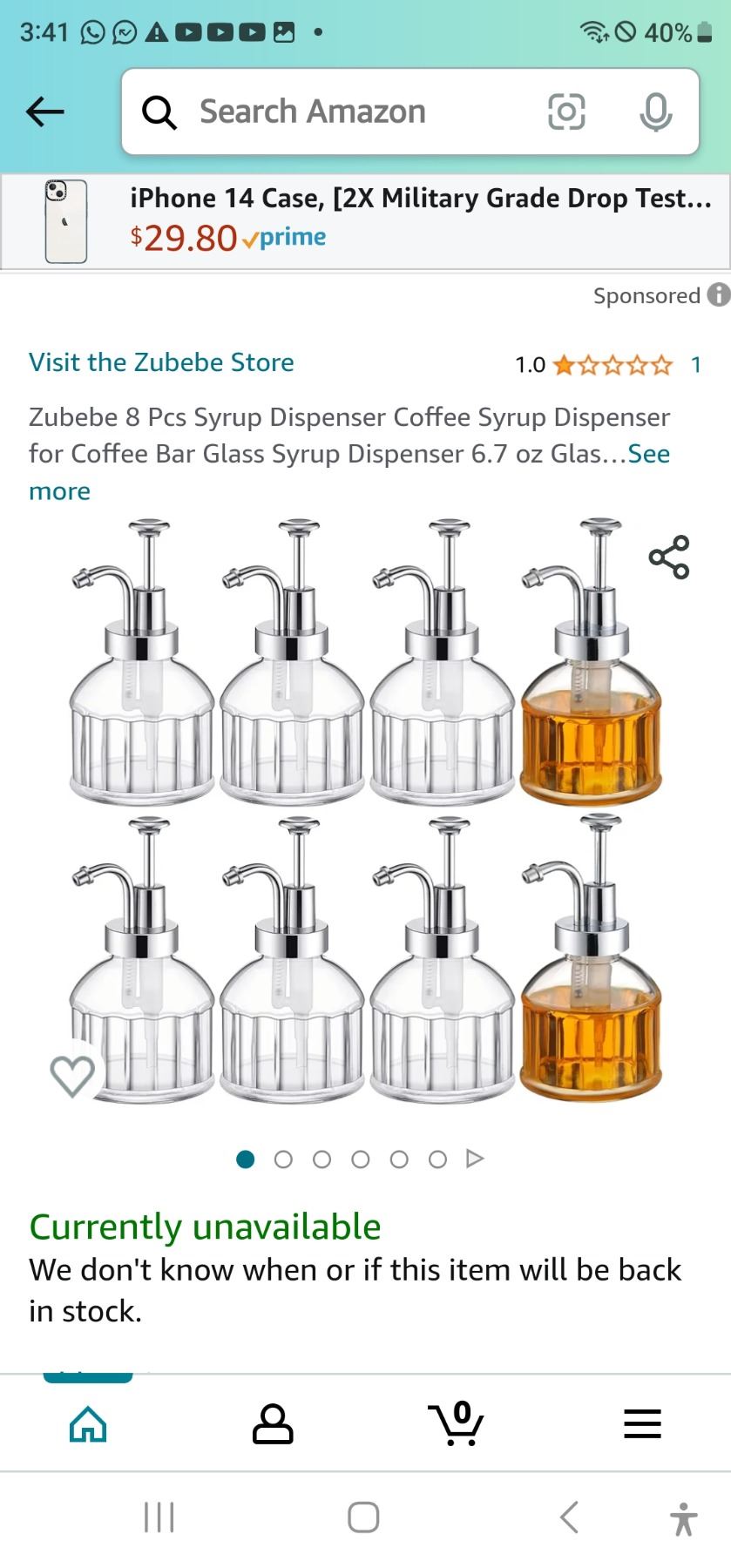 Zubebe, 8pcs glass bottles with pump dispensers, can be used for syrups, oils, soap, new