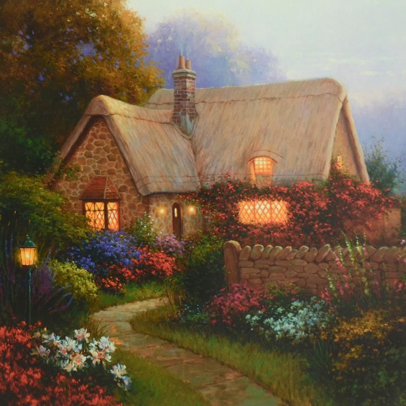"Bougainvillea Cottage" is a limited edition giclee on paper by Sergon, numbered and hand signed by the artist. Measures approx. 20" x 16.5" (with border), 17.5" x 15" (image).