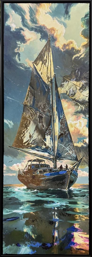 Brilliant mix mddia on canvas. Hand signed by artist. This artwork come beautifully framed and ready to hang. 60x 24"