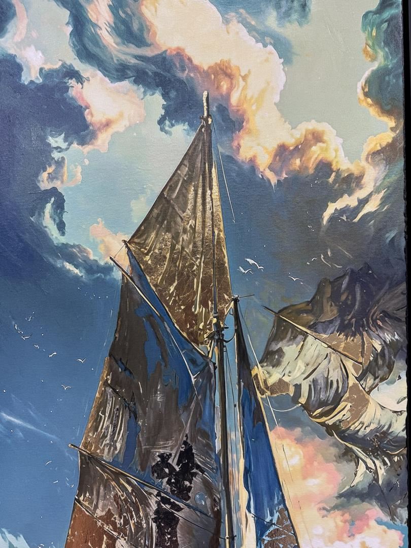Brilliant mix mddia on canvas. Hand signed by artist. This artwork come beautifully framed and ready to hang. 60x 24"