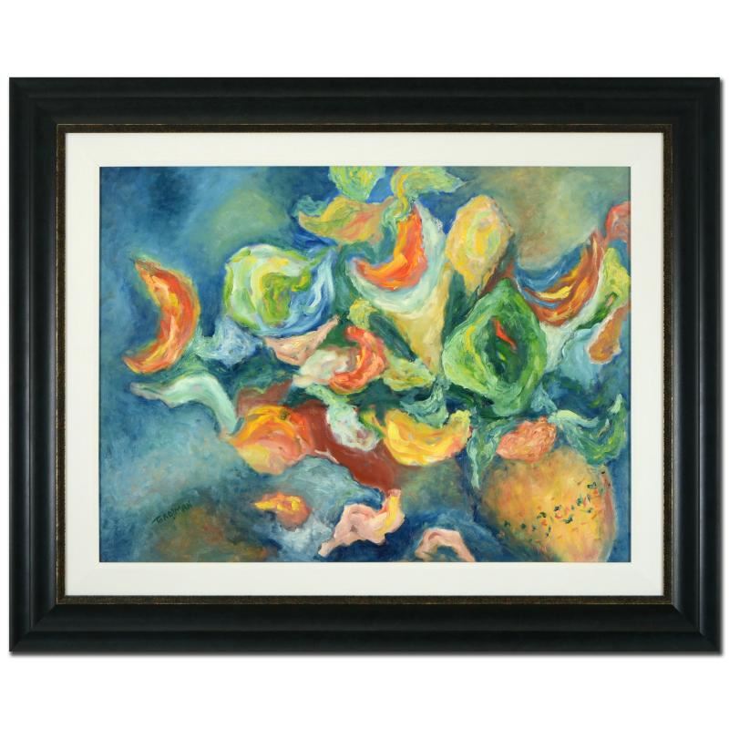 "Bouquet" is an original oil painting on canvas by Itzhak Tordjman, hand signed by the artist! This piece was custom framed using acid free materials and is ready to hang. Includes Certificate of Authenticity! Measures approx. 41" x 33.5" (with frame); 30.5" x 23" (image).