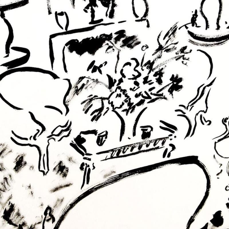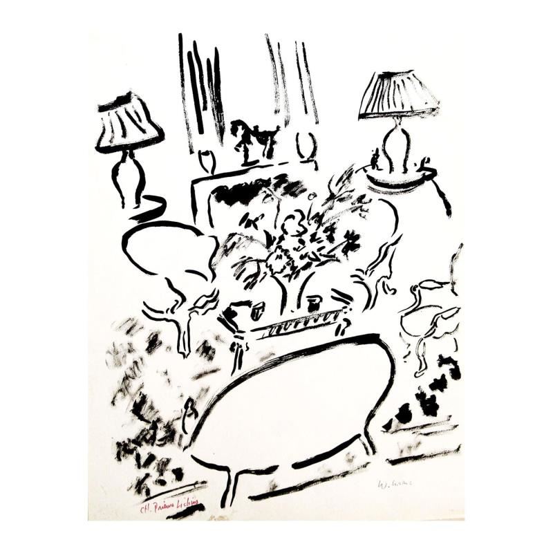 "Bouquets at Chateau Prieure-Lichine" is an original Pen & Ink on Paper by Wayne Ensrud. The piece is hand signed by the artist and comes with a Certificate of Authenticity. Measures approximately 25" x 19".