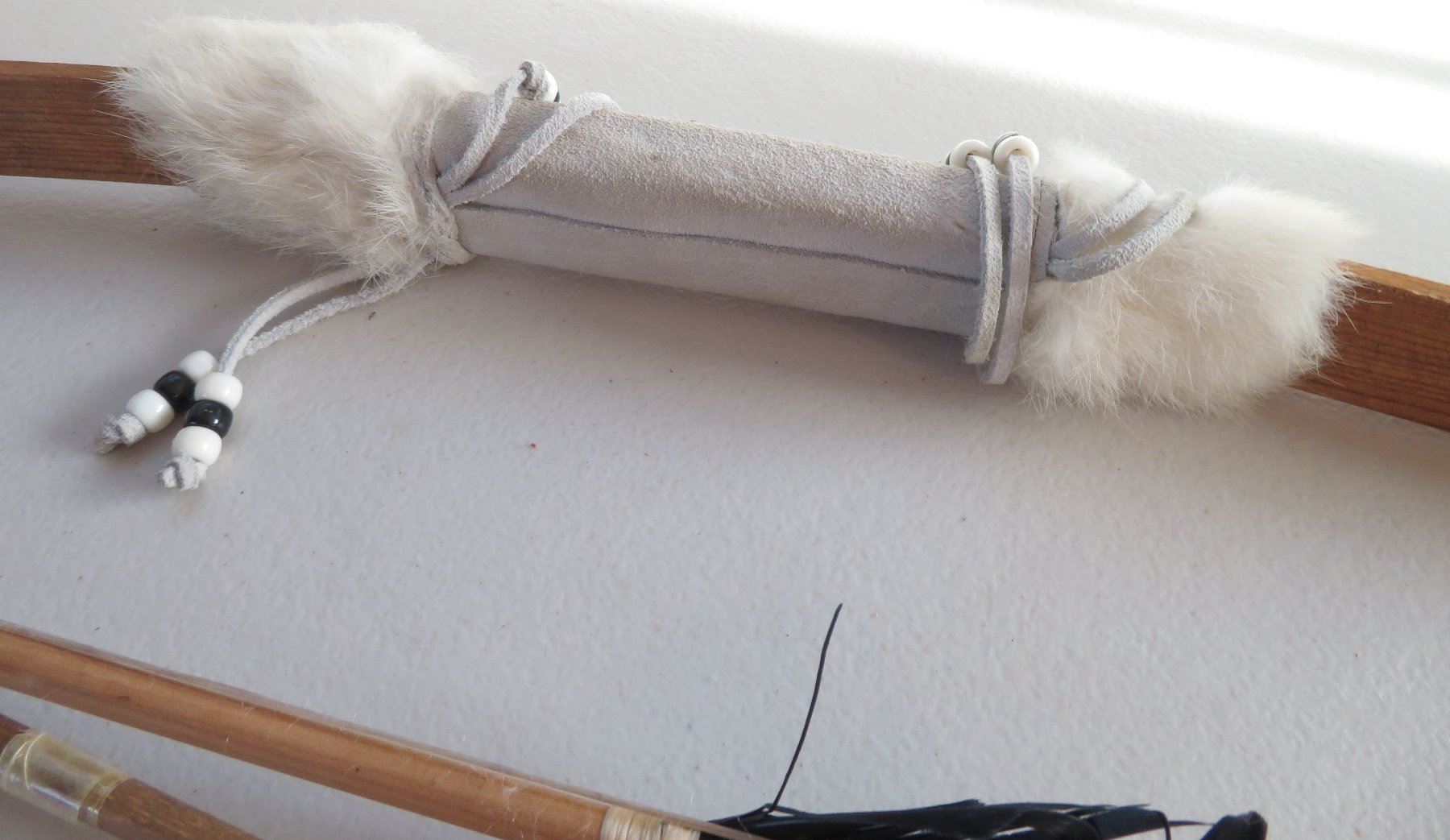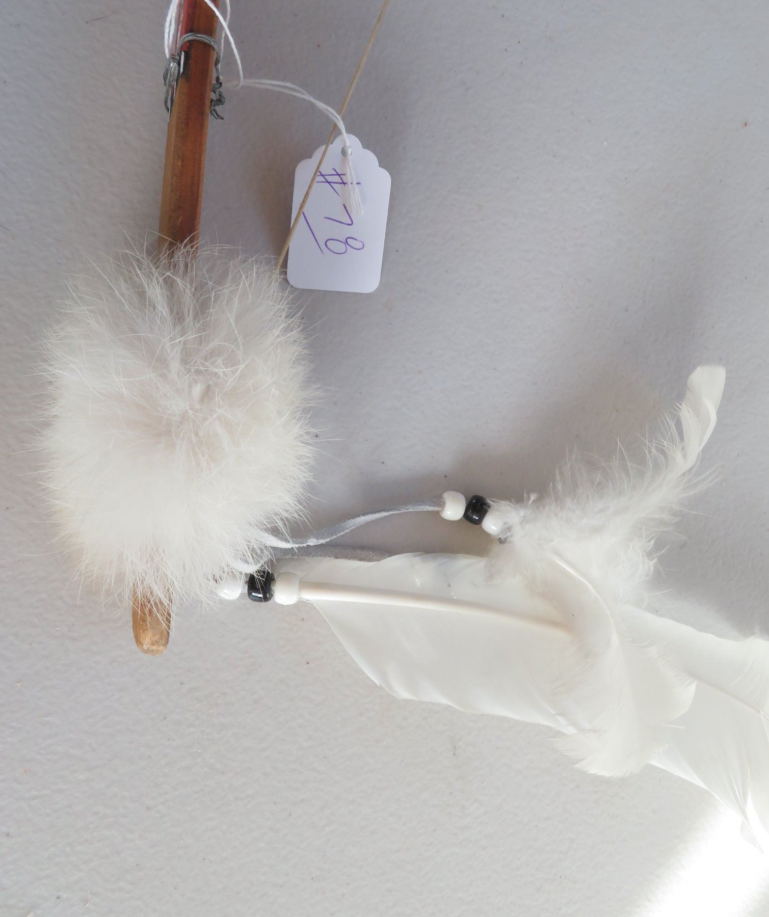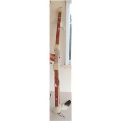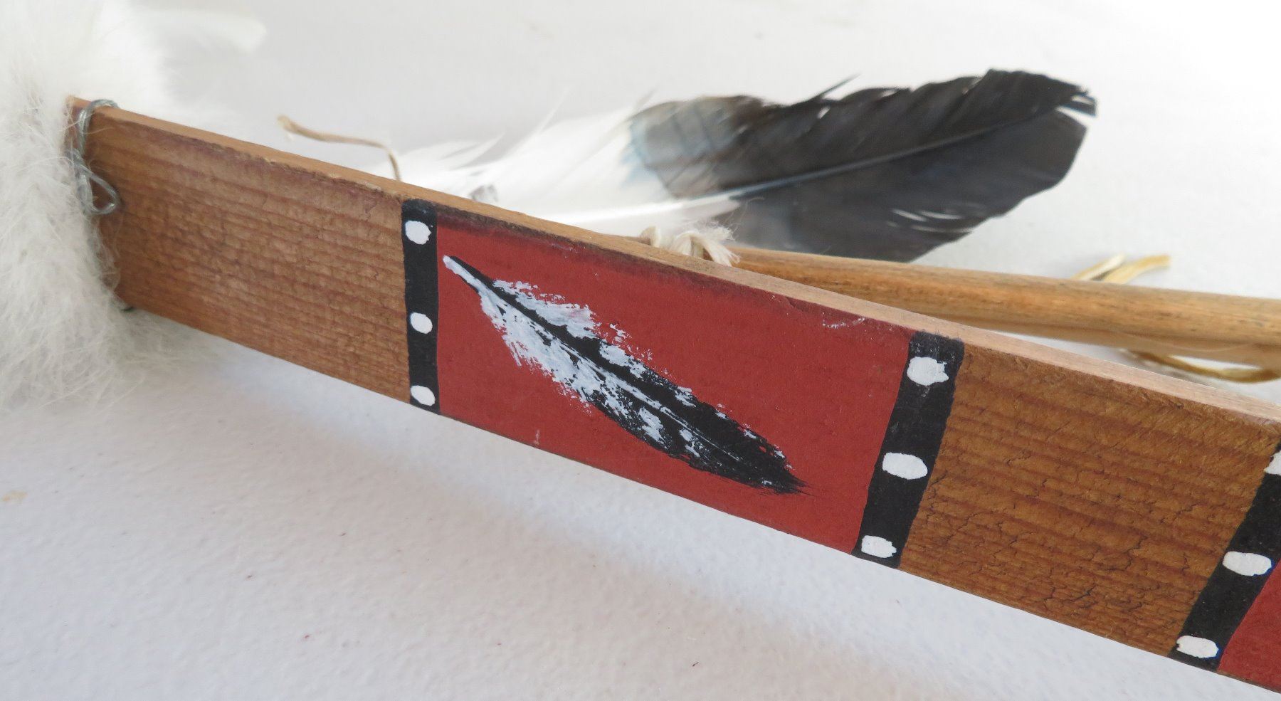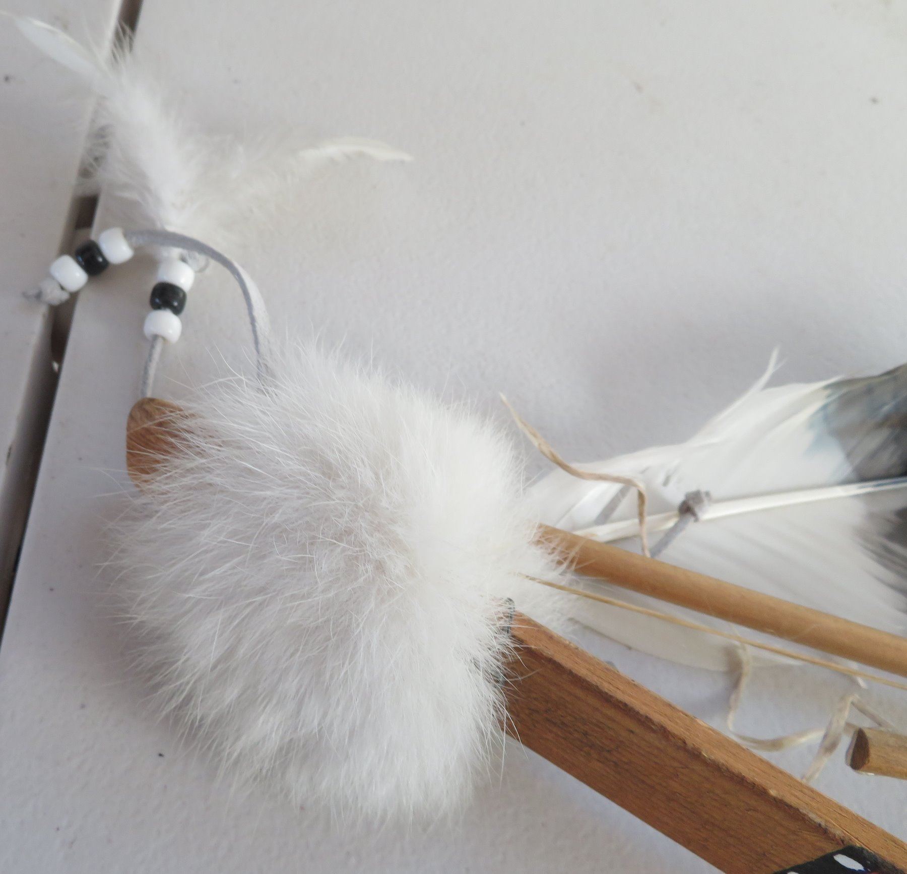 Bow & Arrow Set, c. 1950s. Made of wood, paint, feathers and beads, the bow measures 46" x 2" and the longest arrow is 28". Cheyenne. Condition: Arrow damage, see images. Shipping: $50.00 USA estimate only, due to length.