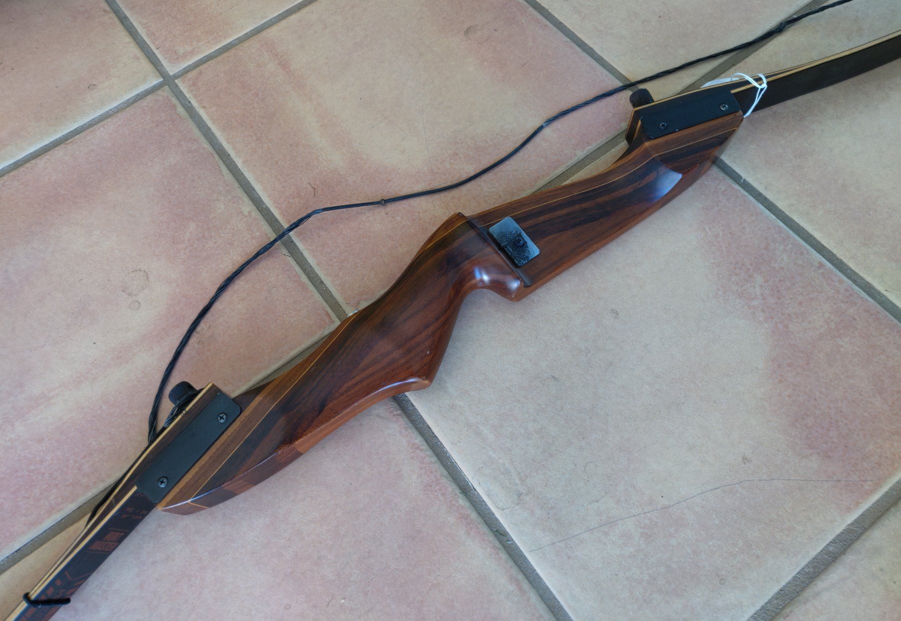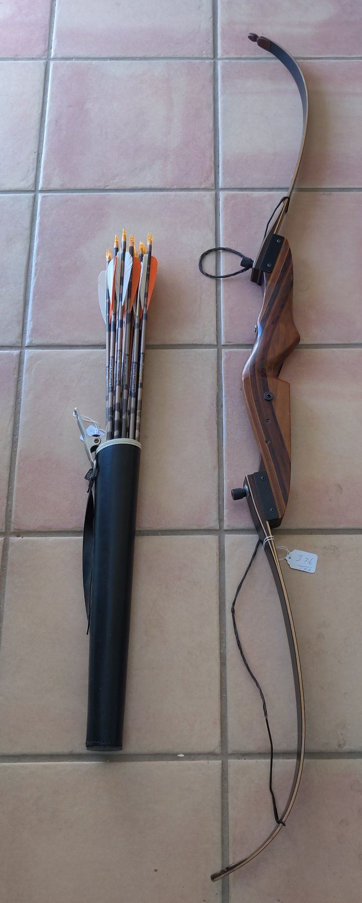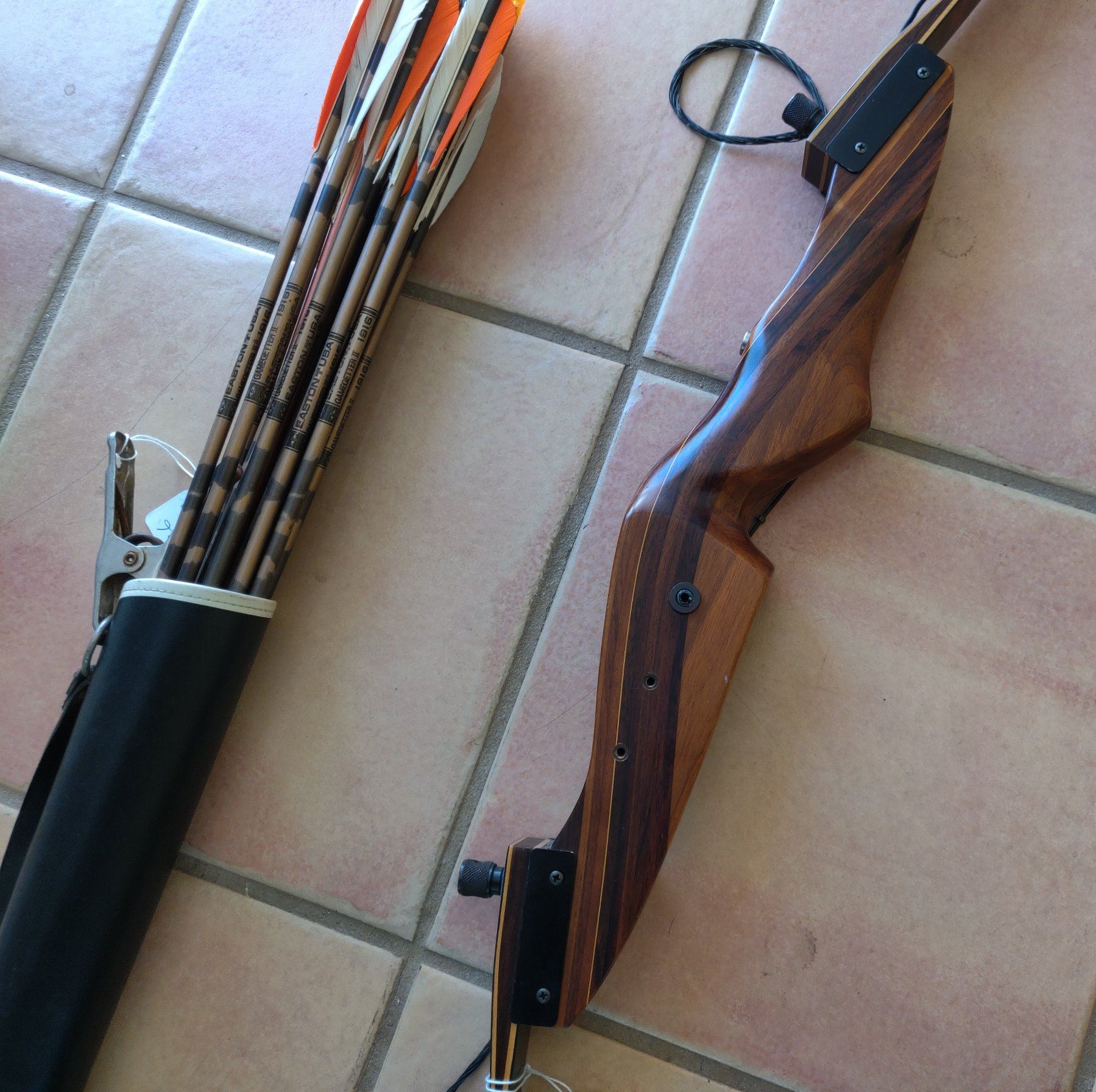 Bow & Arrows Set, c. 1990s. Made of wood and steel, the bow measures 58" and the arrows 30". USA. Approx. 50 lb pull. Condition: Nice bow, some wear from use, see images. Shipping: $55.00 USA estimate only, due to size and value, w/insurance and signature.