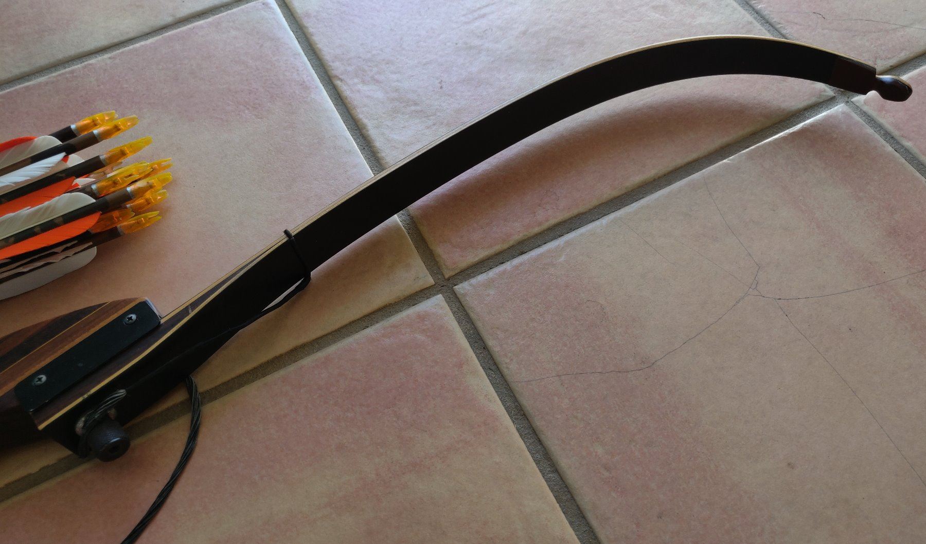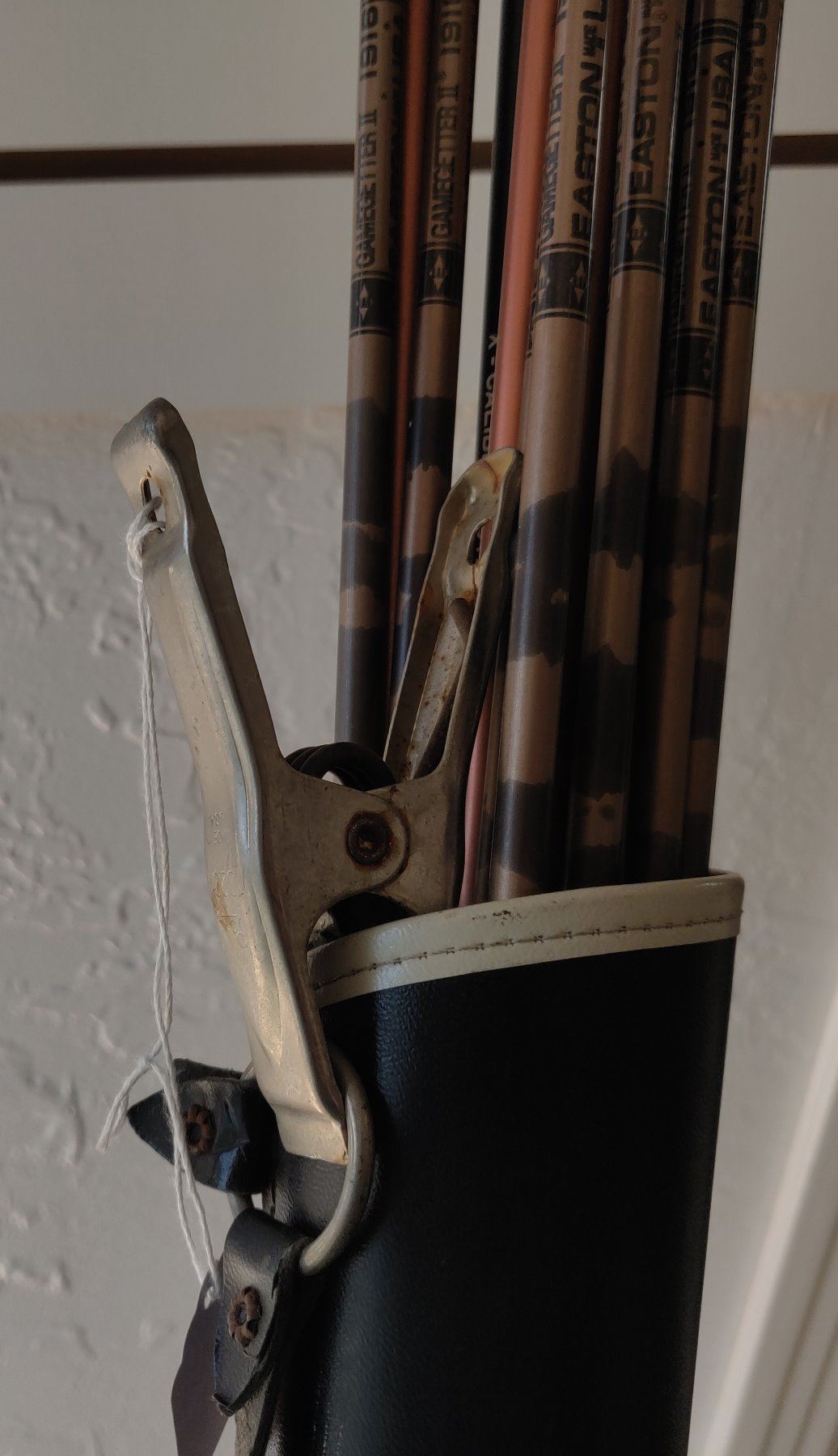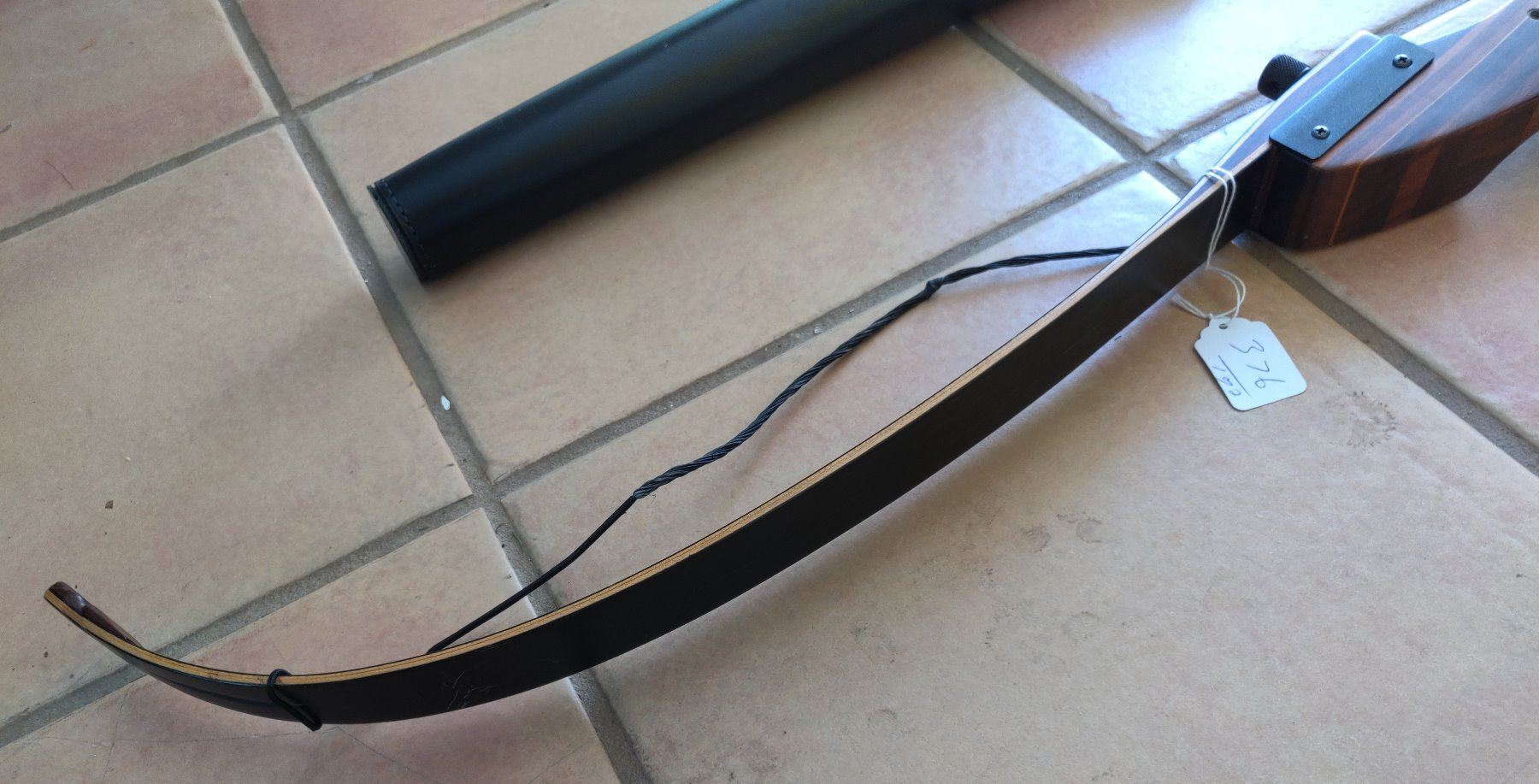 Bow & Arrows Set, c. 1990s. Made of wood and steel, the bow measures 58" and the arrows 30". USA. Approx. 50 lb pull. Condition: Nice bow, some wear from use, see images. Shipping: $55.00 USA estimate only, due to size and value, w/insurance and signature.