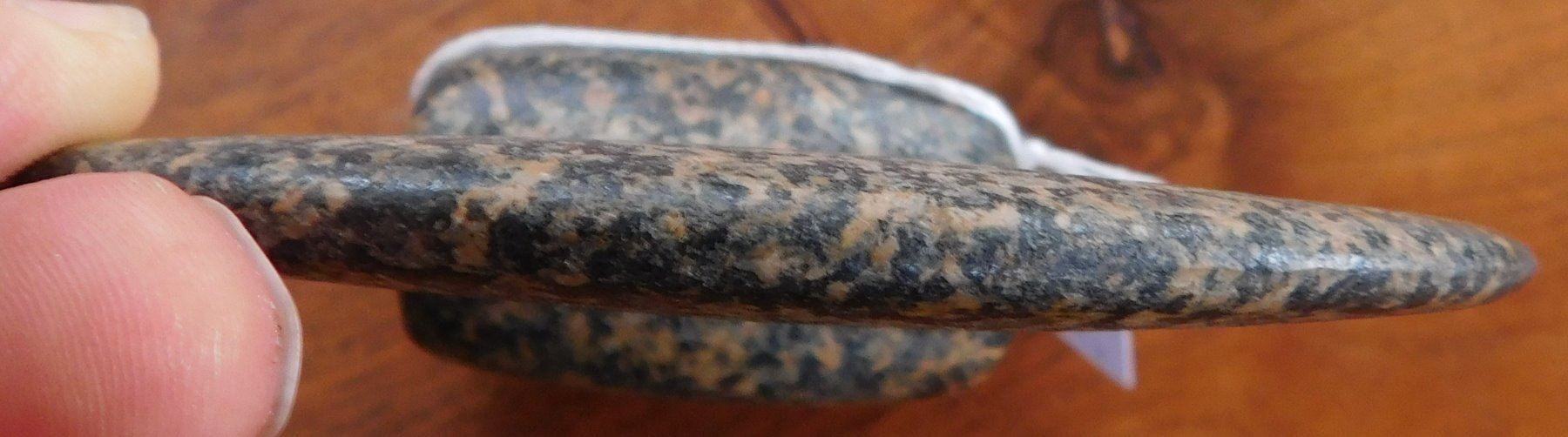 Bow Tie Bannerstone, pre-historic item. Made of granite, the item measures 6 3/4" x 4" x 1 1/4". Pike County, Illinois. From an old, 1960s California collection. Condition: Great, see images. Shipping: $22.50 w/insurance and signature.