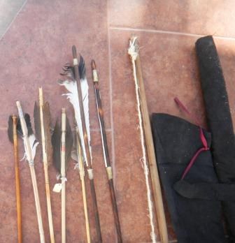 Bow with seven arrows, bow case and quiver. Contemporary. Bow is 40 inches, bow case is 32 inches, the longest arrow is 33 inches. Shipping $20.00 Condition is fair