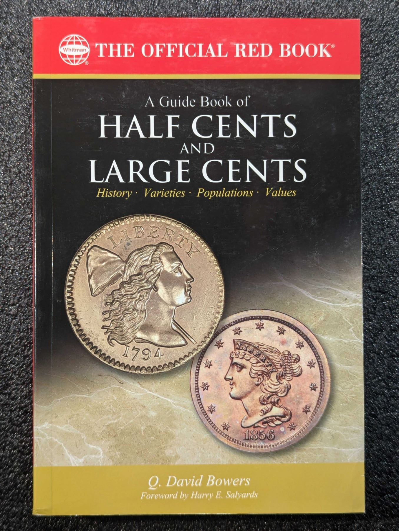 Bowers, Q. David. A GUIDE BOOK OF HALF CENTS AND LARGE CENTS. Whitman Publishing, LLC, Atlanta. 2015. 8vo. xii, 564 pages. original pictorial card covers. Tables. Notes. Bibliography. color photos throughout. English text. The David Baker Library. Fine. Volume #19 in Whitman's best-selling Bowers Series covers two of the earliest U.S. coin denominations: half cents and large cents. These classic copper coins were made from 1793 (the year after the U.S. Mint was founded) into the late 1850s (shortly before the Civil War started). In this colorfully illustrated book, America's popular early coppers are given the famous Q. David Bowers treatment: insightful study, rich historical background, and detailed data analysis. Bowers the Dean of American Numismatics and the most prolific numismatic author of all time tells you everything you need to know to be a smart collector: how to evaluate quality, determine value, understand the market, and make good buys. Along the way, he explains why, in all of American coinage, half cents and large cents possess a special charm. You'll learn how the history of the developing nation shaped the coins designs and production, and the effects of the War of 1812 and other national events on their coinage.