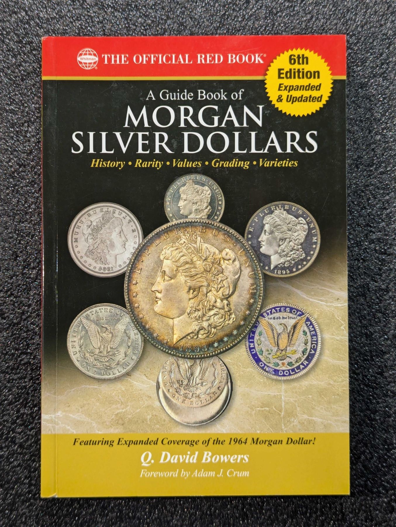 Bowers, Q. David. A GUIDE BOOK OF MORGAN SILVER DOLLARS - THE OFFICIAL RED BOOK. Whitman Publishing, LLC, Pelham. 2019. 12mo. x, 310 pages. original pictorial card covers. 6th edition. Notes. Glossary. Bibliography. Color coin photos throughout. English text. The David Baker Library. Fine. In the sixth edition of 'A Guide Book of Morgan Silver Dollars', Q. David Bowers offers an engaging portrait of the country's most popular classic coin. You'll learn what to look for when you buy, how to grade your coins, how to cherry pick varieties and ways to become a smarter collector. The pricing, text, and certified population data have been edited and updated. Update your numismatic library today with this informative and interesting read. Lot weight: 1 lbs 6oz. Subject(s): United States Coins.