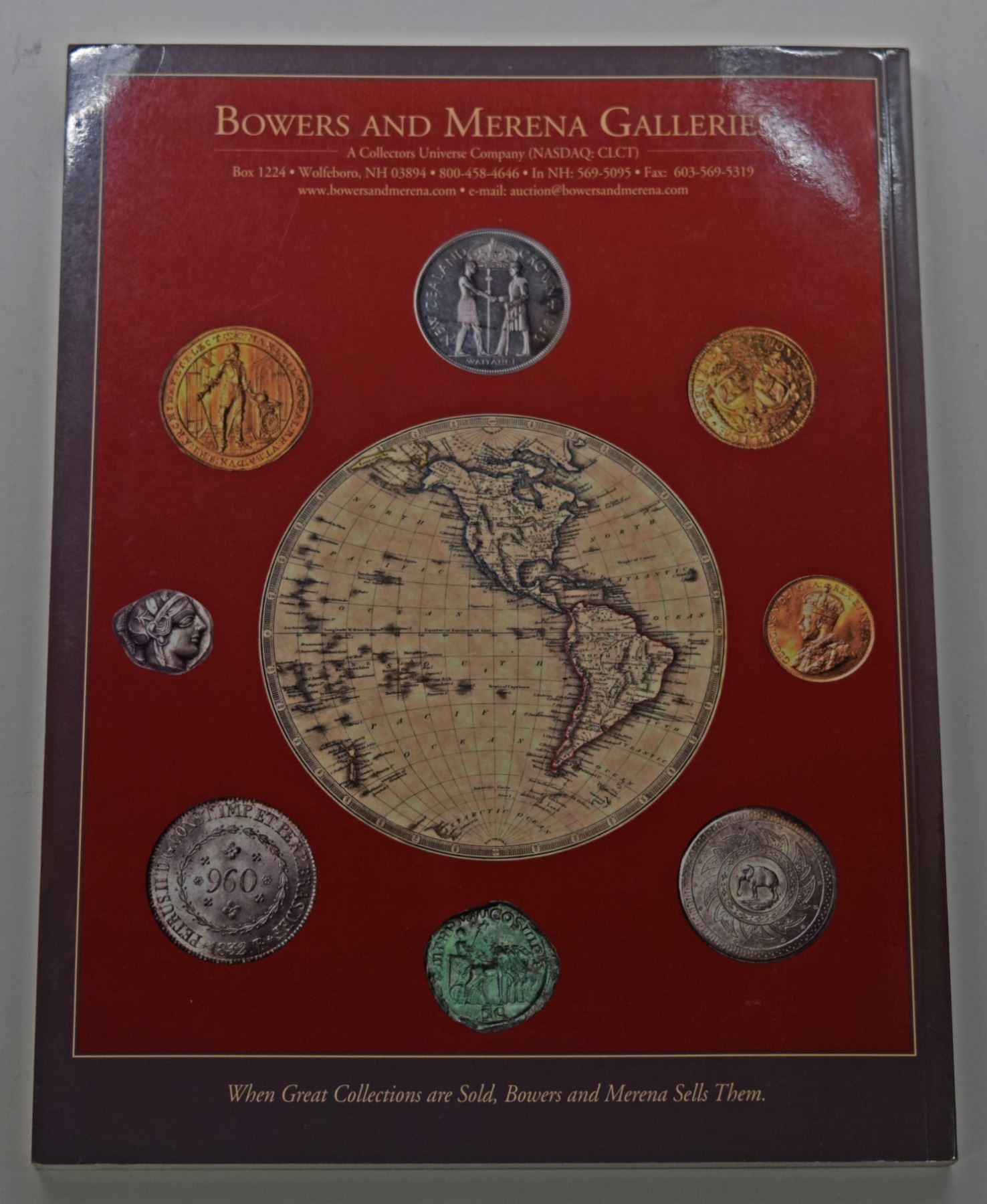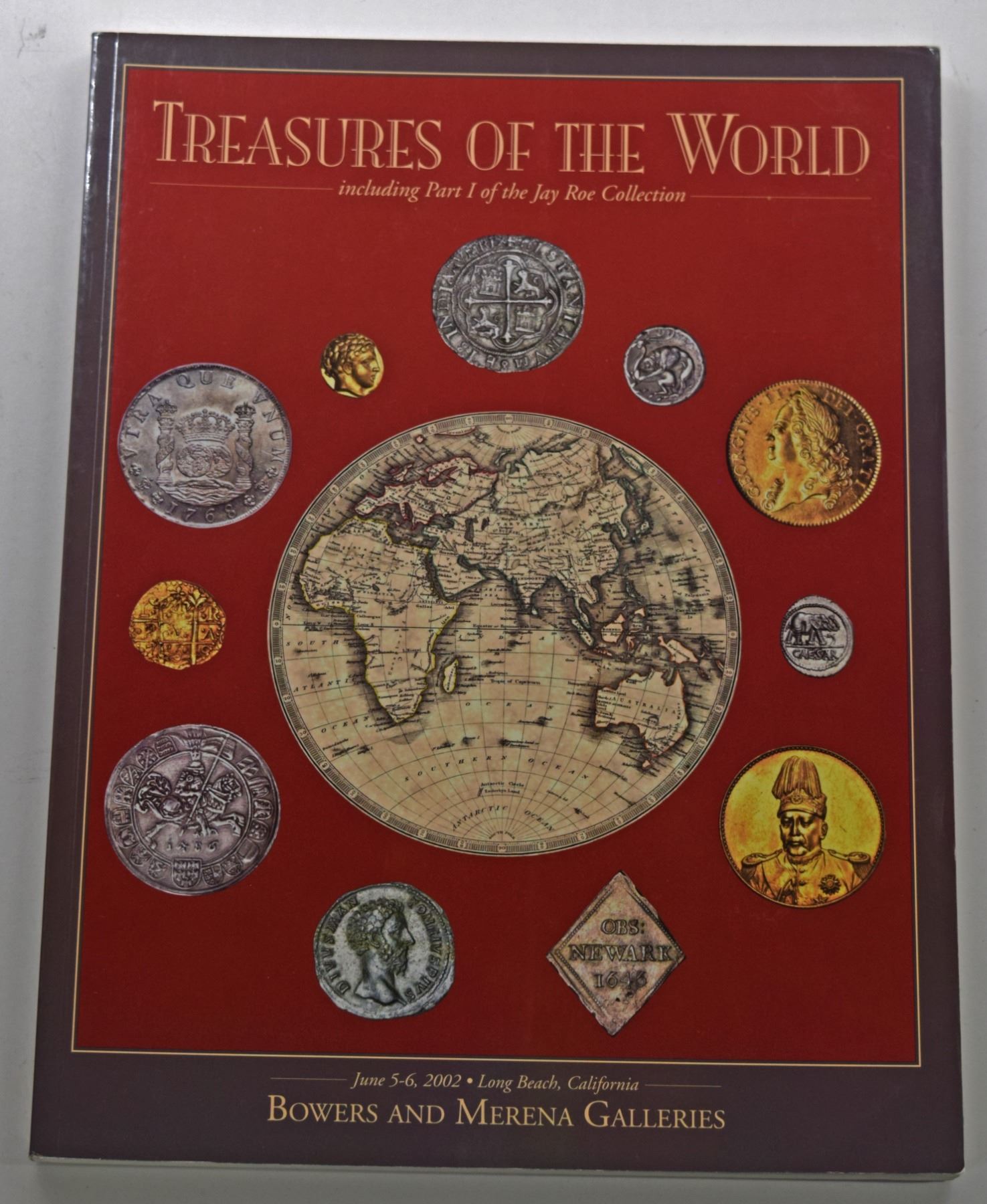 Bowers and Merena Galleries. TREASURES OF THE WORLD INCLUDING PART I OF THE JAY ROE COLLECTION. June 5-6, 2002. 4to, 210 pages; Softcover; This auction catalog contains 17 lots of Tumbaga bars with a description of their historical significance, three 1732 pillar dollars, and a Mexico 8 reales “royal”. It also includes 74 lots of cobs and portrait coins from the Lucayan Beach Wreck ("Nuestra Senora de los Remedios"), “Atocha”, 1715 Fleet, 1733 Fleet (including three 1732 pillar dollars), the “Princess Louisa”, the “Reygersdahl”, the “Nuestra Senora de la Luz”, the “Dodington”, the “Auguste”, the “Athenienne”, the “Lady Burgess”, the “San Pedro de Alcantara”, and the “Elingamite”…all with brief descriptions of the shipwrecks. Subject: History - Sunken Treasure