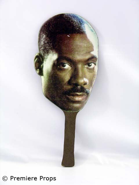 Wooden board w/ eddie murphy's face on it (looking towards the camera)