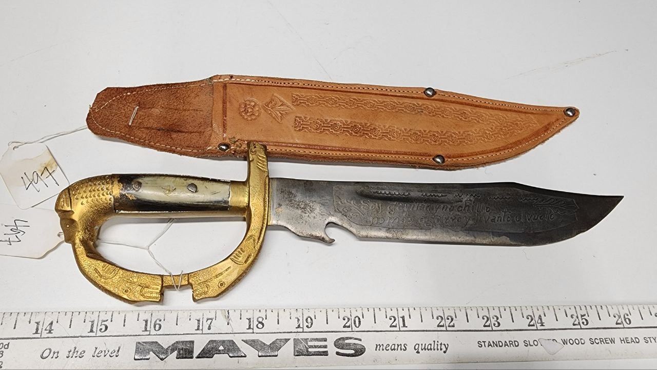 Bowie Style, Length 13 1/2" Engraved Dagger with sheath