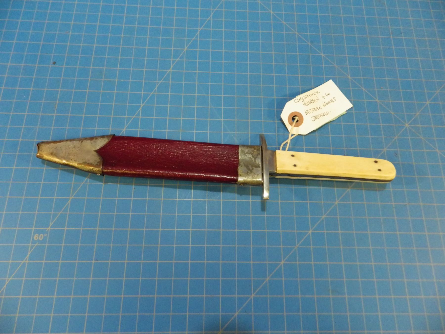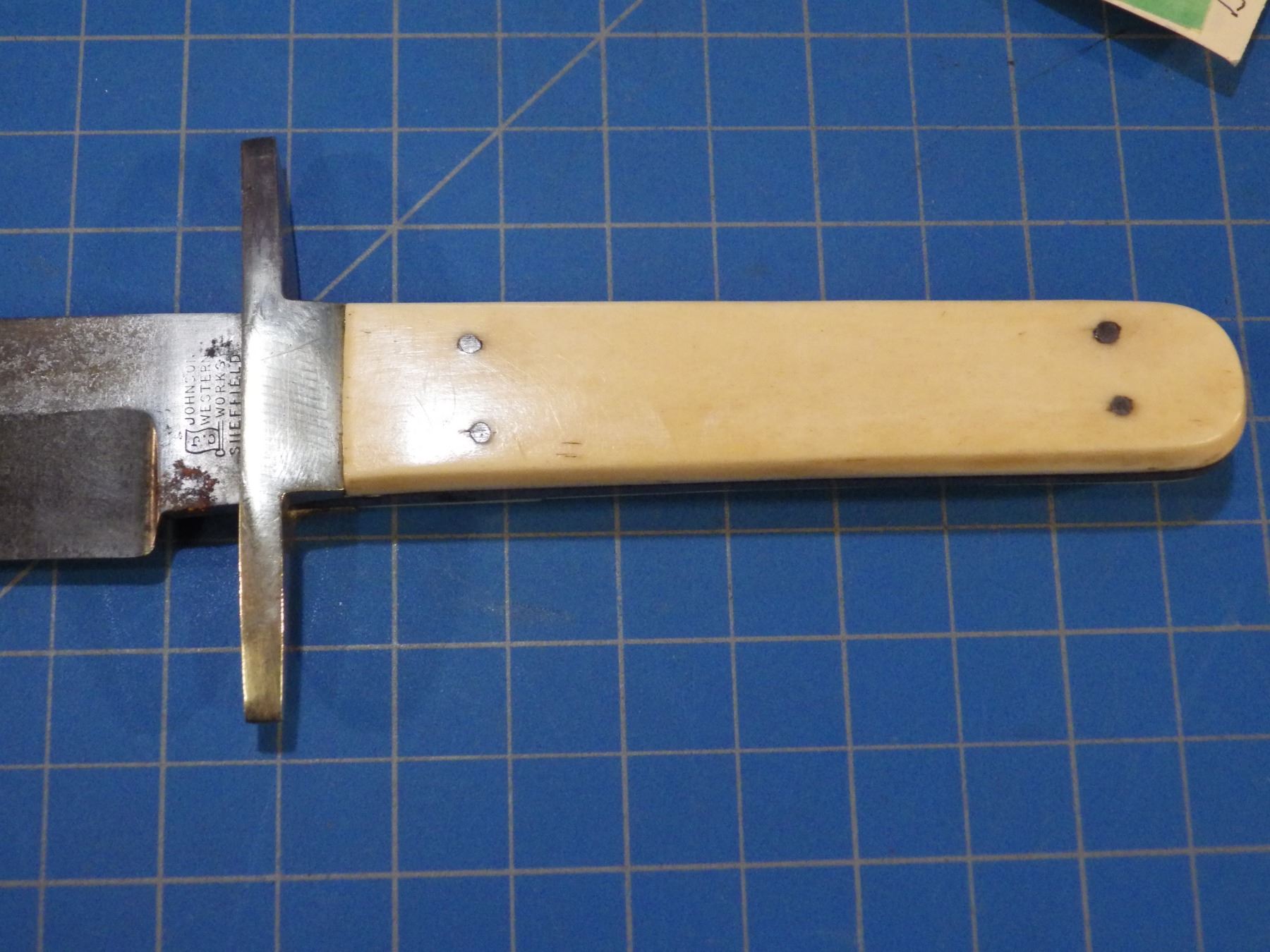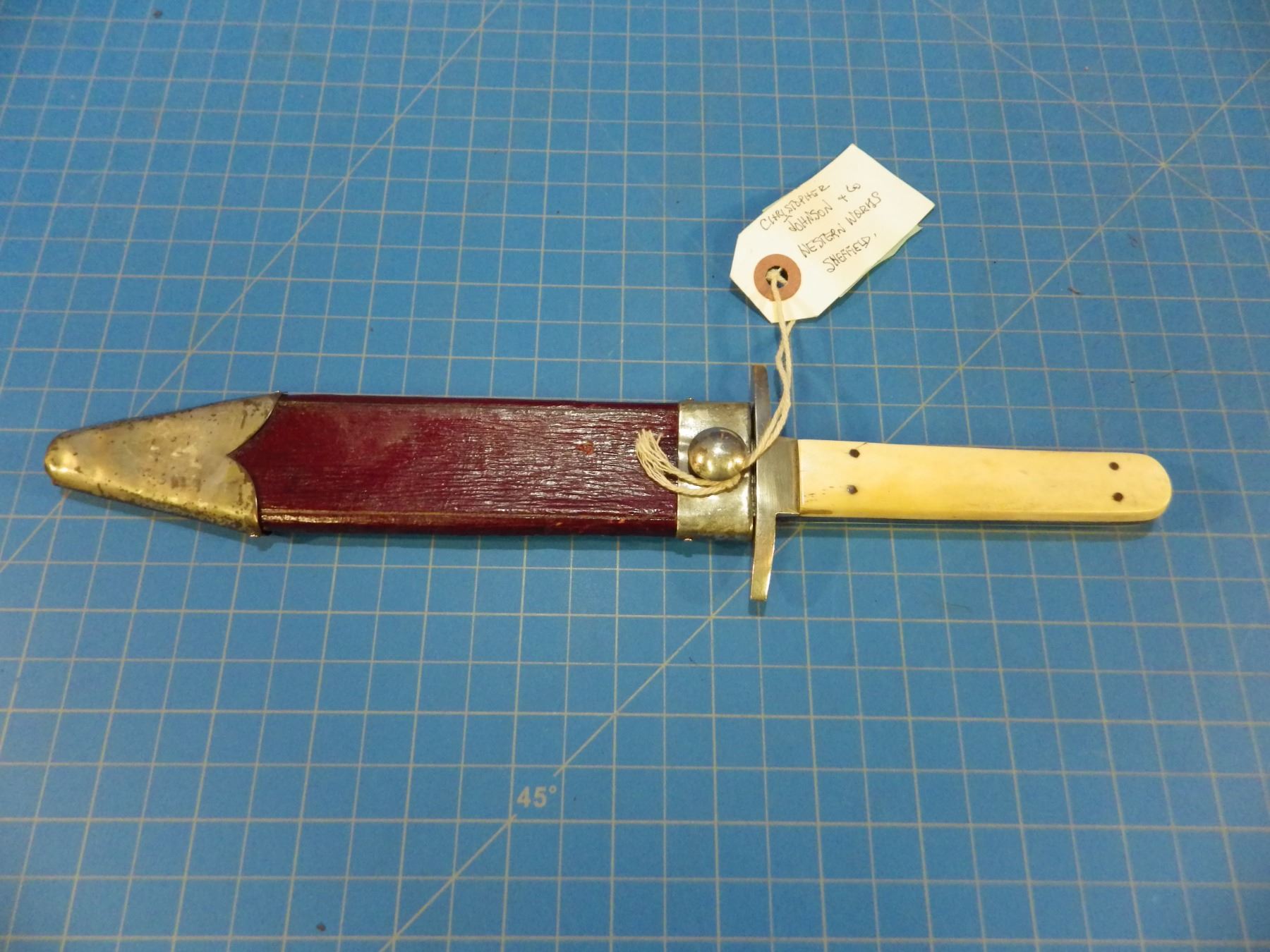 Bowie knife with 7" spear point blade, marked "Christopher Johnson & Co Western Works Sheffield, with bone handle