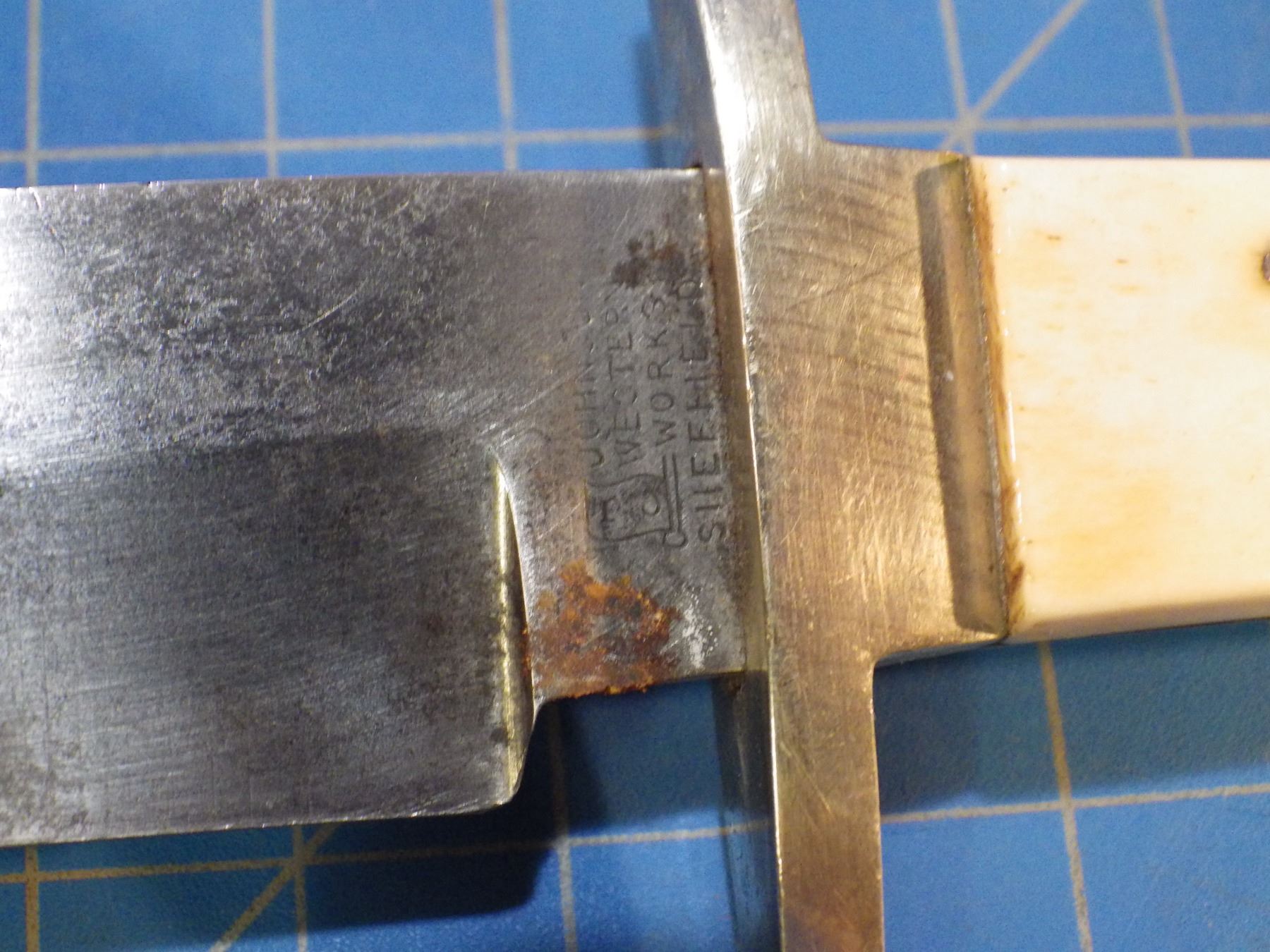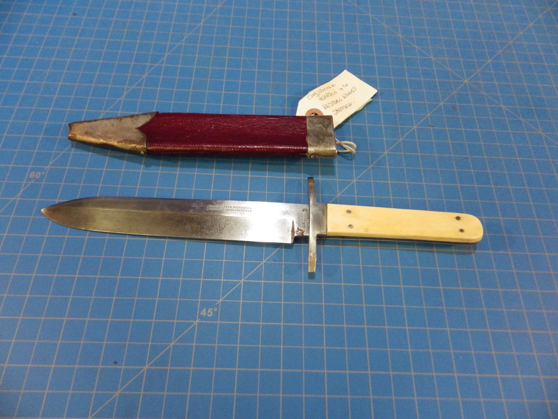 Bowie knife with 7" spear point blade, marked "Christopher Johnson & Co Western Works Sheffield, wit
