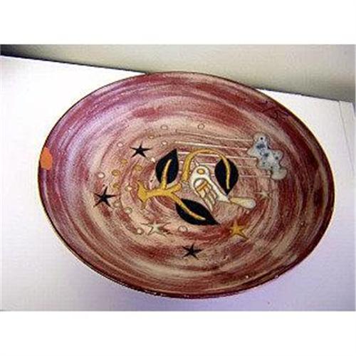 <tr><td>Title:Bowl Paris France Red Earthenware Enamel Bird</td></tr>